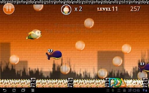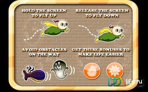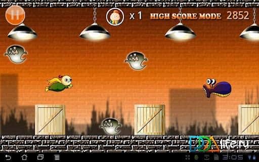 Увлекательная аркада для андроид Flying Boy. Простой сюжет поможет приятно провести часок-другой. Главный герой - летающий мальчик, который боится разных монстров, привидений и прочей нечисти. Ваша задача - помочь мальчику преодолеть свои страхи, а заодно и всех этих монстриков. Управление лучше некуда - жмешь на экран - летишь, отпускаешь - падаешь. А если мальчишка вооружен - то прикосновение значит, что вы можете стрелять! Симпатичненькая графика, возможность съемки игры Скачай прямо сейчас забавную аркаду Flying Boy для Андроид 1.6 и выше!