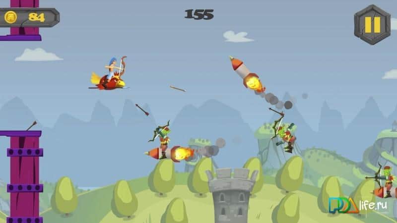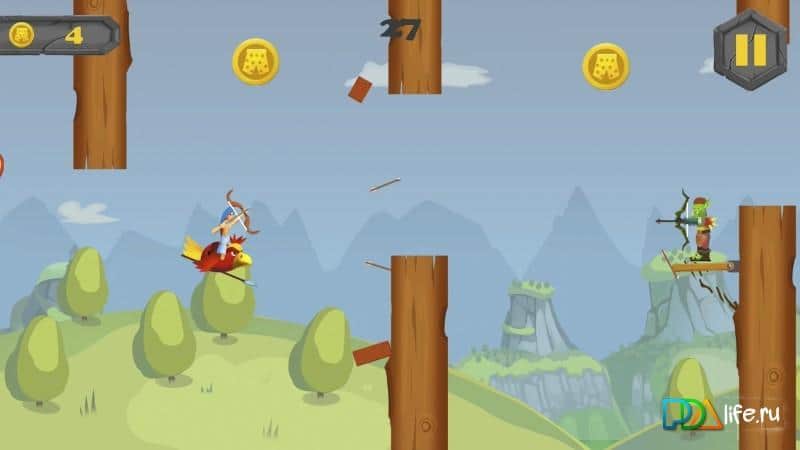 Flying Dude – управляйте героєм у грі для андроїд, який літає на птицю і знищує ворогів. У цій грі орди орків застали нашого героя зненацька, але він не став впадати у відчай, осідлавши величезну птицю герой кинувся у бій. Візьміть в руки лук і стріляйте по ворогах, знищуючи одного за іншим орків. За допомогою одного дотику пальця до правої частини екрану здійснюйте несподівані маневри, ухиляючись від ворожих атак і пролітаючи через перешкоди. Натисніть на ліву частину екрану, ви будете випускати стріли на ворогів. Грайте в цю гру і отримуйте чудові нагороди за знищених орків.