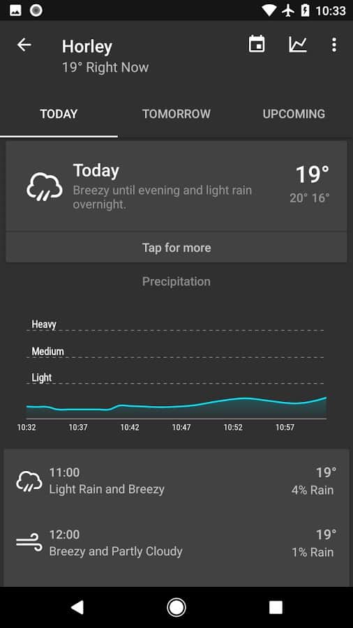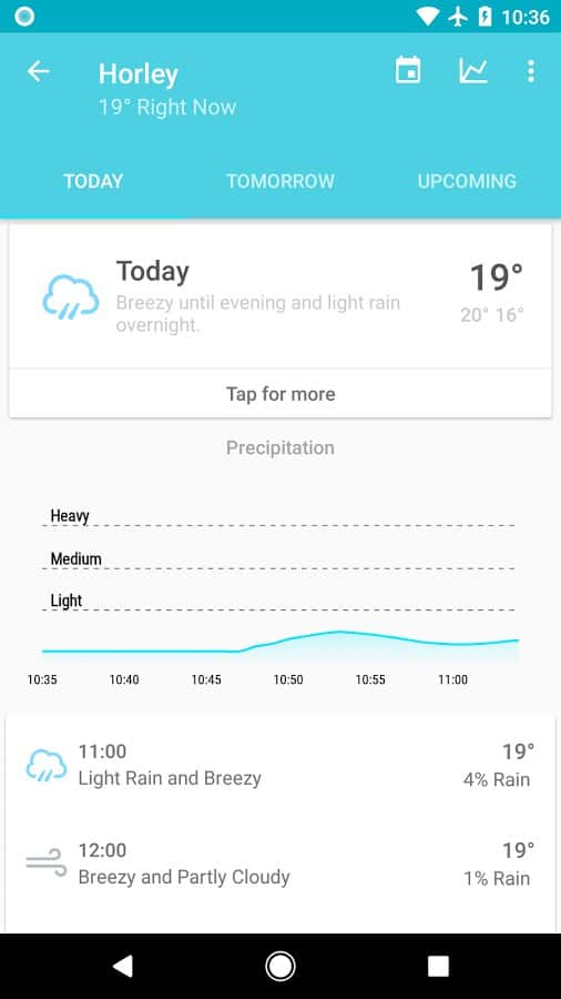 Forecast - Набридли всі ці програми з невірним прогнозом погоди? Та ще і в добавок до того ж у них купа рекламних блоків, а ще всілякі доповнення які тільки гальмують роботу вашого смартфона. Розв'яжіть цю проблему раз і назавжди за допомогою цього додатка. Воно покаже вам прогноз погоди в будь-якому вибраному регіоні, прогноз буде максимально простим, однак якщо ви захочете дізнатися подробиці, то зможете розгорнути статистику і в графіках прочитати абсолютно все.