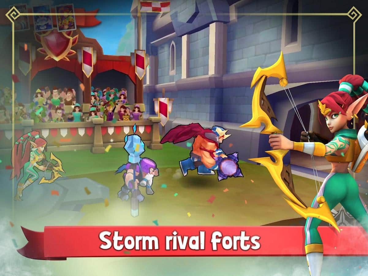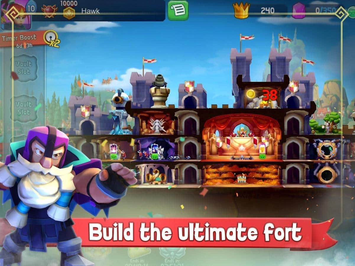 Fort Stars – стратегія на андроїд, де ви будете штурмувати стіни ворожого замку. Зберіть непереможну команду героїв і нападайте на замки супротивників, намагаючись дістати їх скарби. Збирайте і колекціонуйте магічні карти, які допоможуть вам перемогти битви з ворогами. Обрушивайте стіни замку супротивників, вступайте в сутички з вартою і переможете сильних босів і все заради скарбів. По ходу гри відкривайте нових персонажів і освоюйте нові вміння та заклинання. Зводите свої стіни замку і захищайте їх будь-якими шляхами від сильних супротивників.