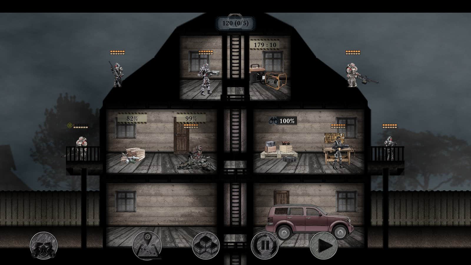 Побудуйте до 12 різних типів будівель для оборони та забезпечення бази.