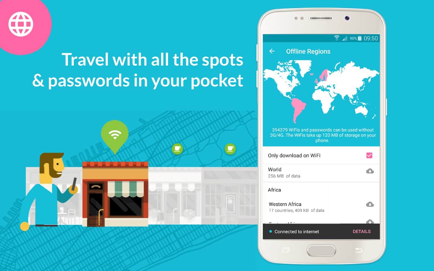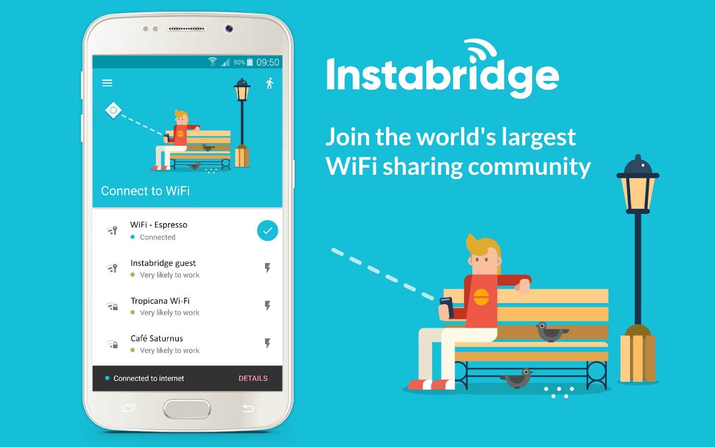 Free Wifi from Instabridge – цікава програма створена розробниками Instabridge AB, мета якої забезпечити вам доступ до тисячі WiFi точок з безкоштовним доступом в інтернет по всьому світу. Діліться усіма знайденими точками зі своїми друзями, так як Instabridge дозволяє зберігати всі паролі до публічних мереж WiFi онлайн.
