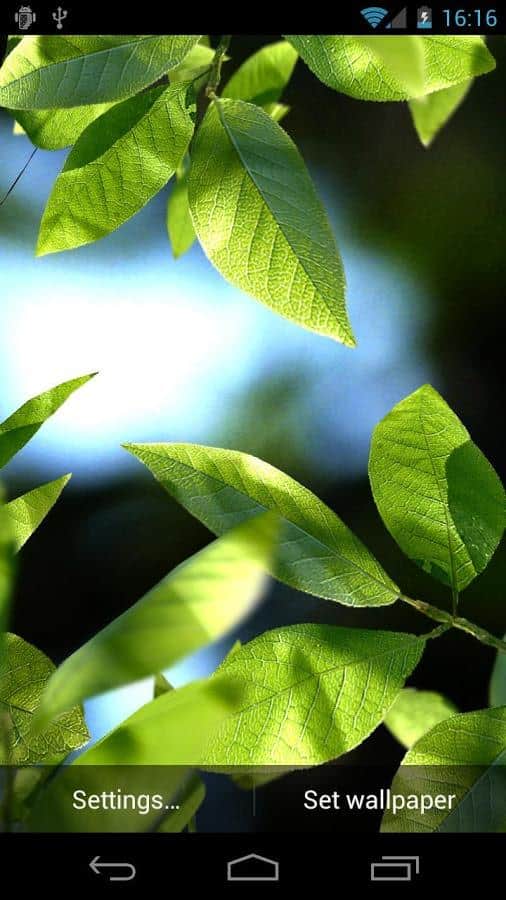 Свіже Листя - Красиві і захоплюючі шпалери для вас. Надворі похолодало, і настала осінь? Не проблема, з цими живими шпалерами, літо завжди буде поруч! Дані шпалери завжди будуть радувати вас своїми яскравими зеленими квітами, але це не все. Ви можете самостійно настроїти будь-яку погоду, будь то дощ або сніг, а так само вибрати пору року, внаслідок чого зміняться і листя. А ще ви можете налаштувати їх за своїм розсудом, додати звуки, і зовсім насолодитися природою. Змінюйте все, відштовхуючись від свого настрою. Також дані шпалери мають дуже хороше і якісне зображення, що тільки додає їм реалізму. Скачайте і пориньте назад у літо, це ж так просто.