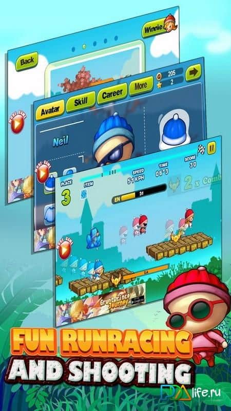 Fun Run Racing And Shooting – нескінченні перегони в режимі мультиплеер з гравцями зі всього світу. Вибирайте собі героя з представлених в грі і почніть свою гонку заради перемоги. Бігайте, стрибайте і обходите всі перешкоди на своєму шляху, подорожуючи по різних локаціях. Сповільнюйте своїх суперників, які хочуть вас обігнати за допомогою спеціальних дротиків і приходьте до фінішу першим. Приміряйте на свого героя в різні костюми і аксесуари, які допоможуть йому в гонці і займайте перші місця в таблиці лідерів. По дорозі збирайте предмети і бонуси і прискорюйтеся за рахунок них.