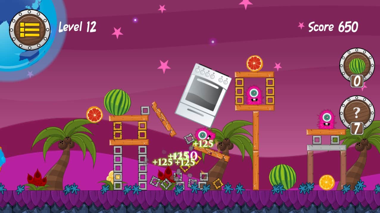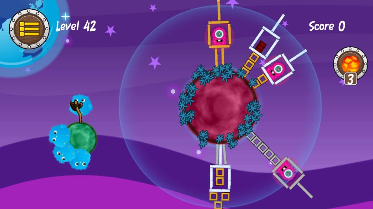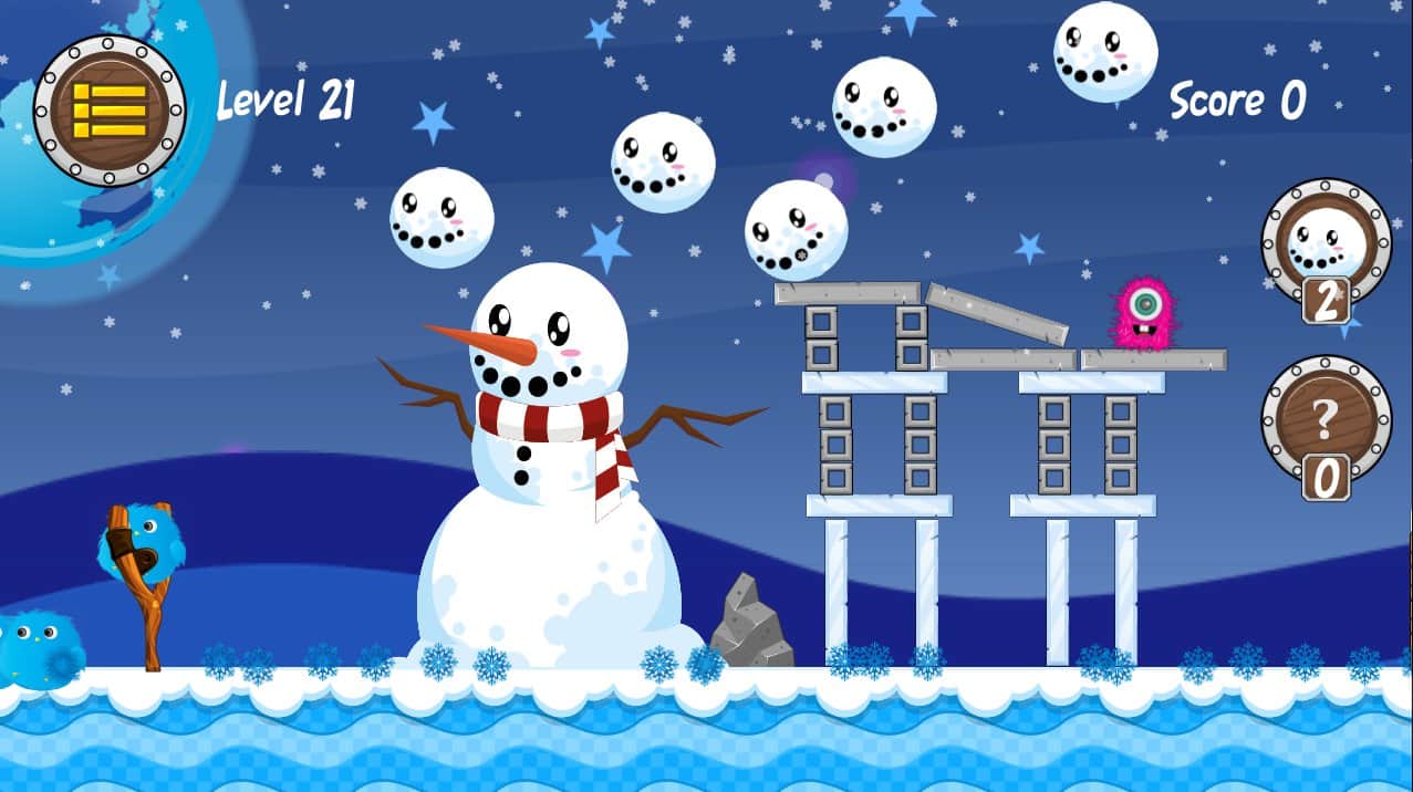 Furry Animals bombing – цікава аркада сильно нагадує відому Angry bird, ось тільки замість пташок у нас будуть мохові грудочки, а свинок замінять веселі інопланетяни, які вирішили захопити планету. Захищайте свою батьківщину з-за всіх сил і не дайте ворогові прорватися. Запускаємо волохатих друзів з рогатки по укріпленим позиціям інопланетян, і руйнуємо їх позиції, при цьому знищуючи й самих прибульців. У вашому розпорядженні цілий арсенал боротьби з ними, використовуй його правильно і ти обов'язково переможеш! У грі вас чекає більше 60 рівнів і 4 різних світи, і найголовніше велика кількість об'єктів, що руйнуються.