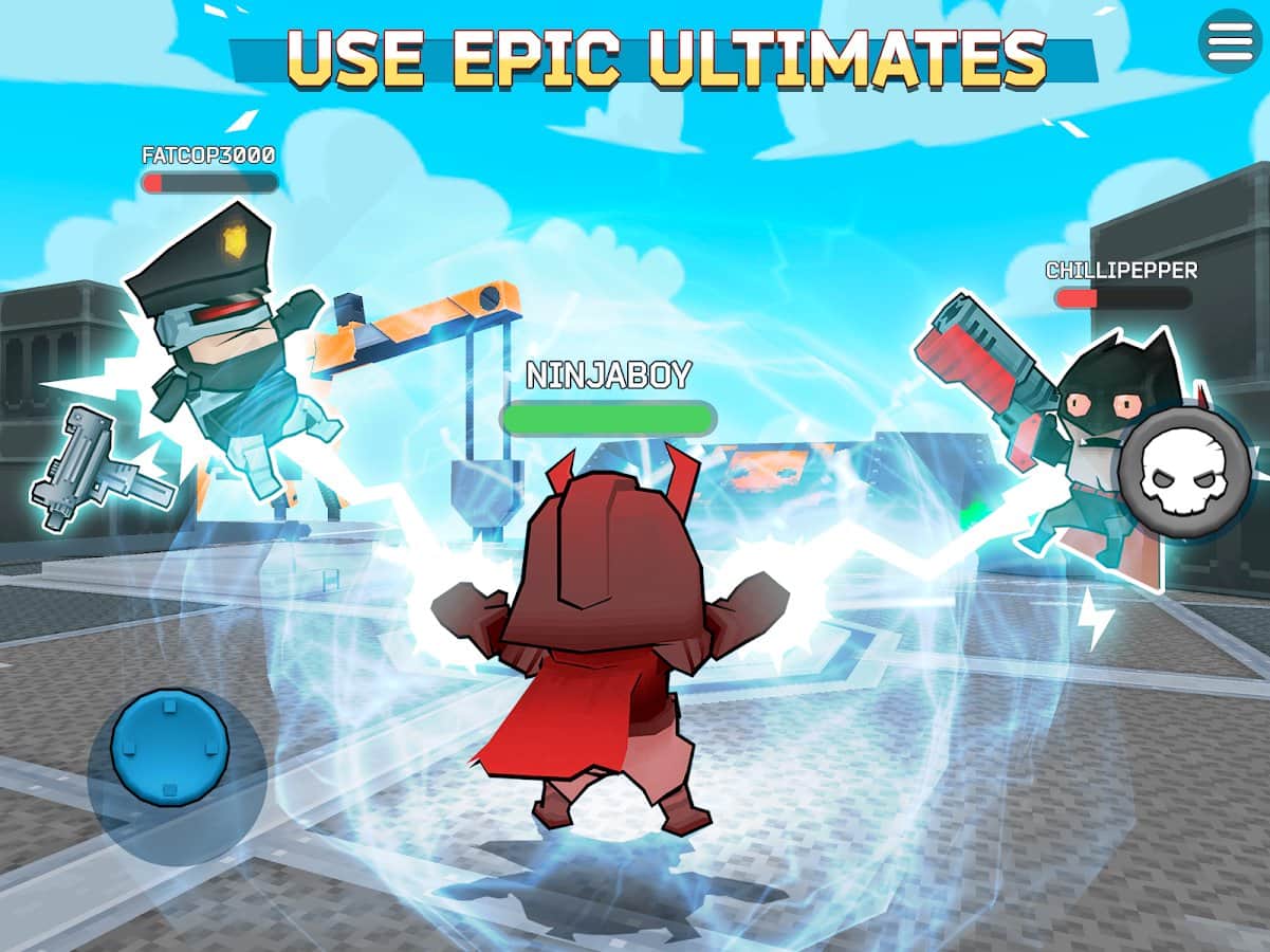 Fury Wars - third person shooter – прийміть участь в епічній битві яка буде проходити на платформі. Візьміть під свій контроль унікальних героїв і кидайте виклик друзям та іншим гравцям. У цій грі вашою головною задачею буде протриматися як можна довше і знищити всіх ворогів. Кожен персонаж в грі володіє унікальними навичками і здібностями. Розробіть свою тактику ведення бою і довго не затримуйтесь на одному місці. Слідкуйте за показниками здоров'я і відступайте в складних ситуаціях. Отримуйте бонуси і посилення за кожного знищеного супротивника і придбайте на них бажане зброю яке буде наносити максимальний збиток і знищувати відразу декількох супротивників.