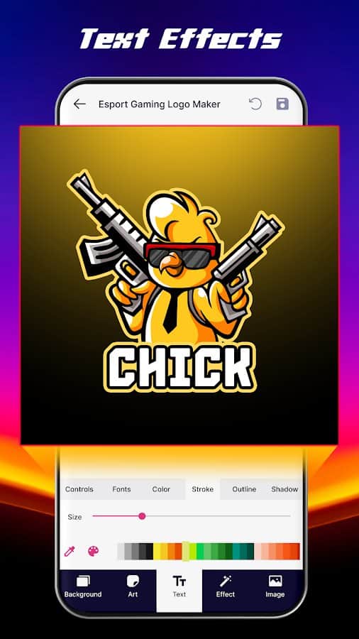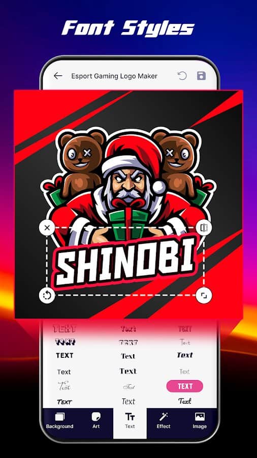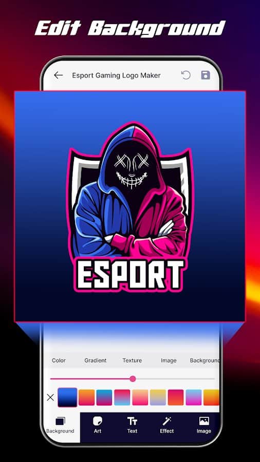 Створіть вражаючі кіберспортивні логотипи, які виділять вашу команду з толпи! Esport Logo Maker - це унікальний додаток, розроблений спеціально для геймерів та кіберспортивних організацій, яким потрібен професійний, запам'ятовуючийся та індивідуальний логотип. Цей потужний інструмент пропонує широкі можливості для дизайну. Вибирайте з понад 100 фонів, створених вручну, щоб задати ідеальний візуальний тон для вашого логотипу. Додавайте захоплюючі 3D-ефекти, щоб ваш логотип виглядав максимально динамічно та об'ємно. А за допомогою широкого вибору текстур і наложень ви зможете надати йому унікальний, запам'ятовуючийся стиль.