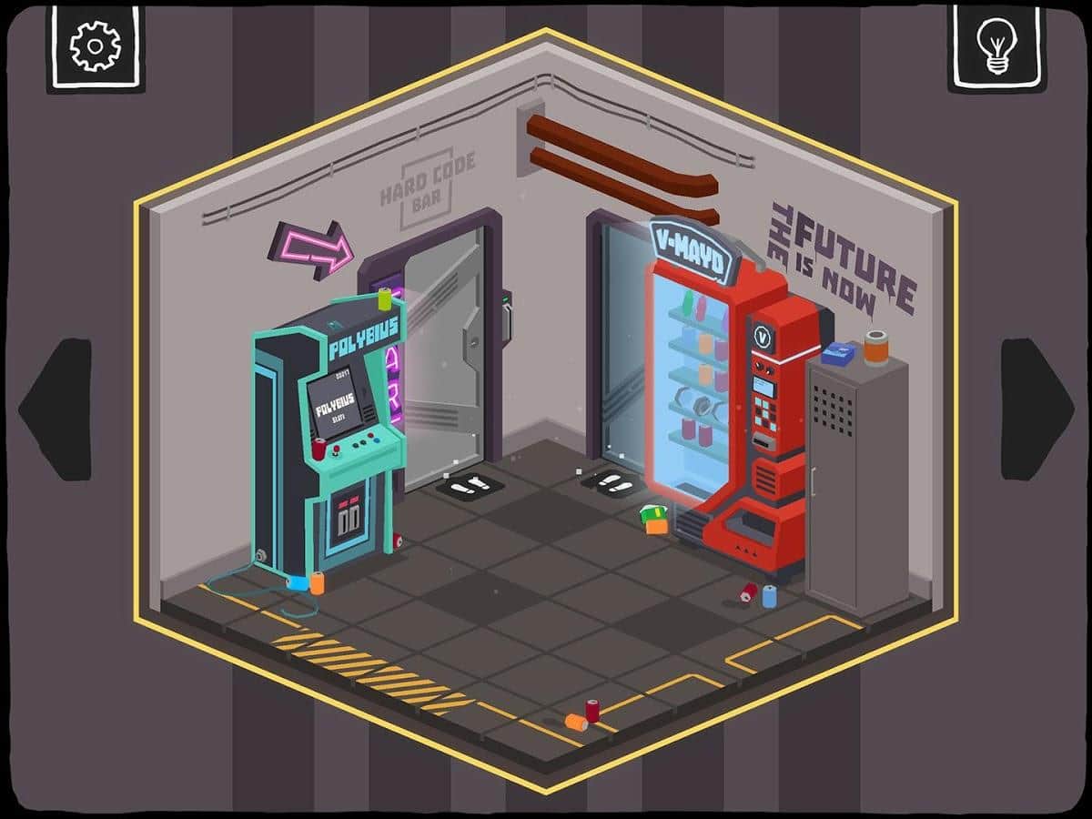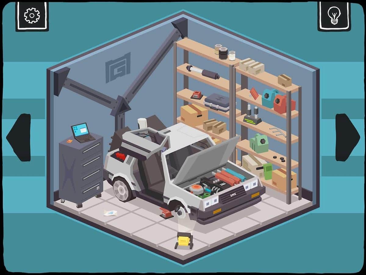 Get aCC_e55 – захоплююча головоломка на андроїд, де ви будете ремонтувати машину часу. Ви придбали на аукціоні машину часу, яка є копією знаменитої машини з фільму «Назад в Майбутнє». Але запустити її у вас не виходить так як треба ремонтувати двигун. У грі ви опинитеся в недалекому майбутньому – кіберпанк де ви місцевий двк. Ви і не вчений і не геній так талановитий винахідник, якому по силам відремонтувати струменевий двигун. Переміщайтеся в майстерню по сусідству з баром і намагайтеся зібрати машину. Вирішуйте головоломки-квести намагаючись зібрати воєдино двигун і виправити інші дрібні поломки машини. Обертайте кімнату в різні сторони і вирішувати різного роду завдання.