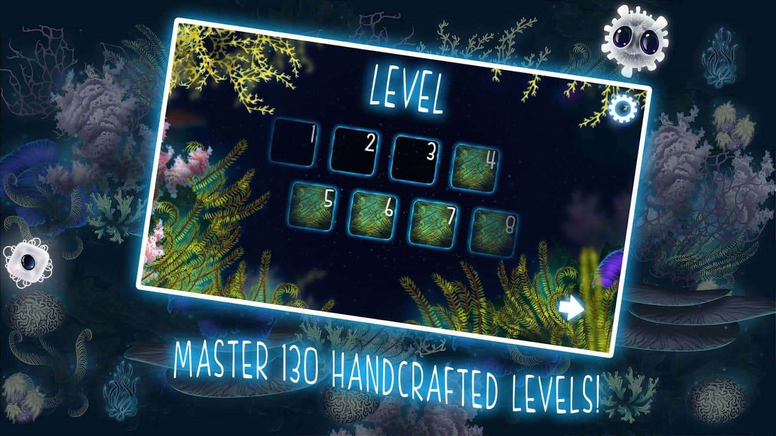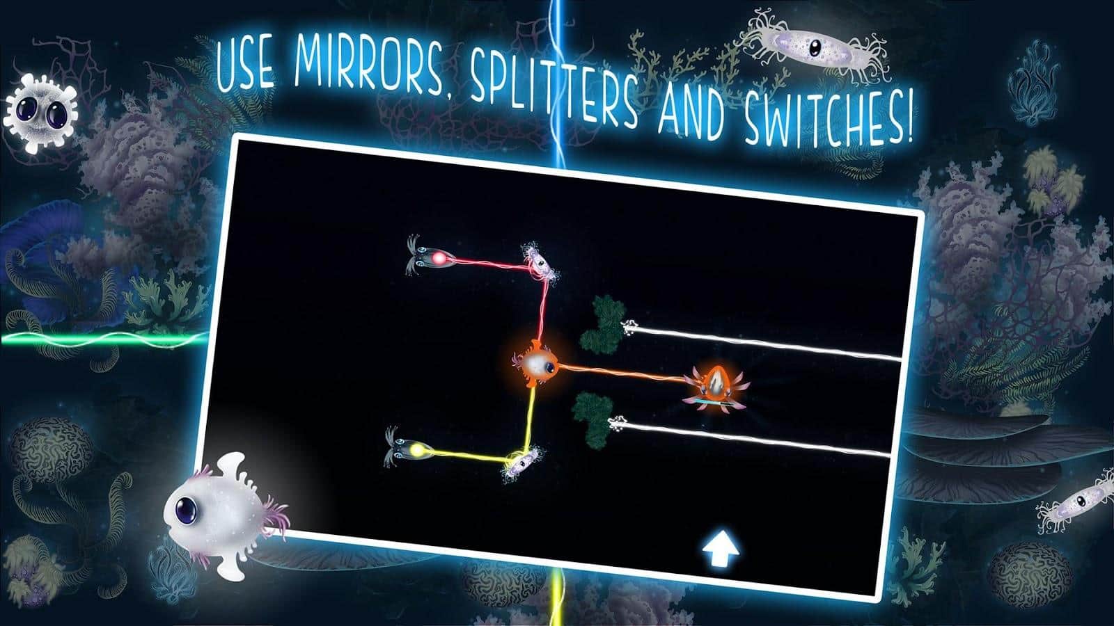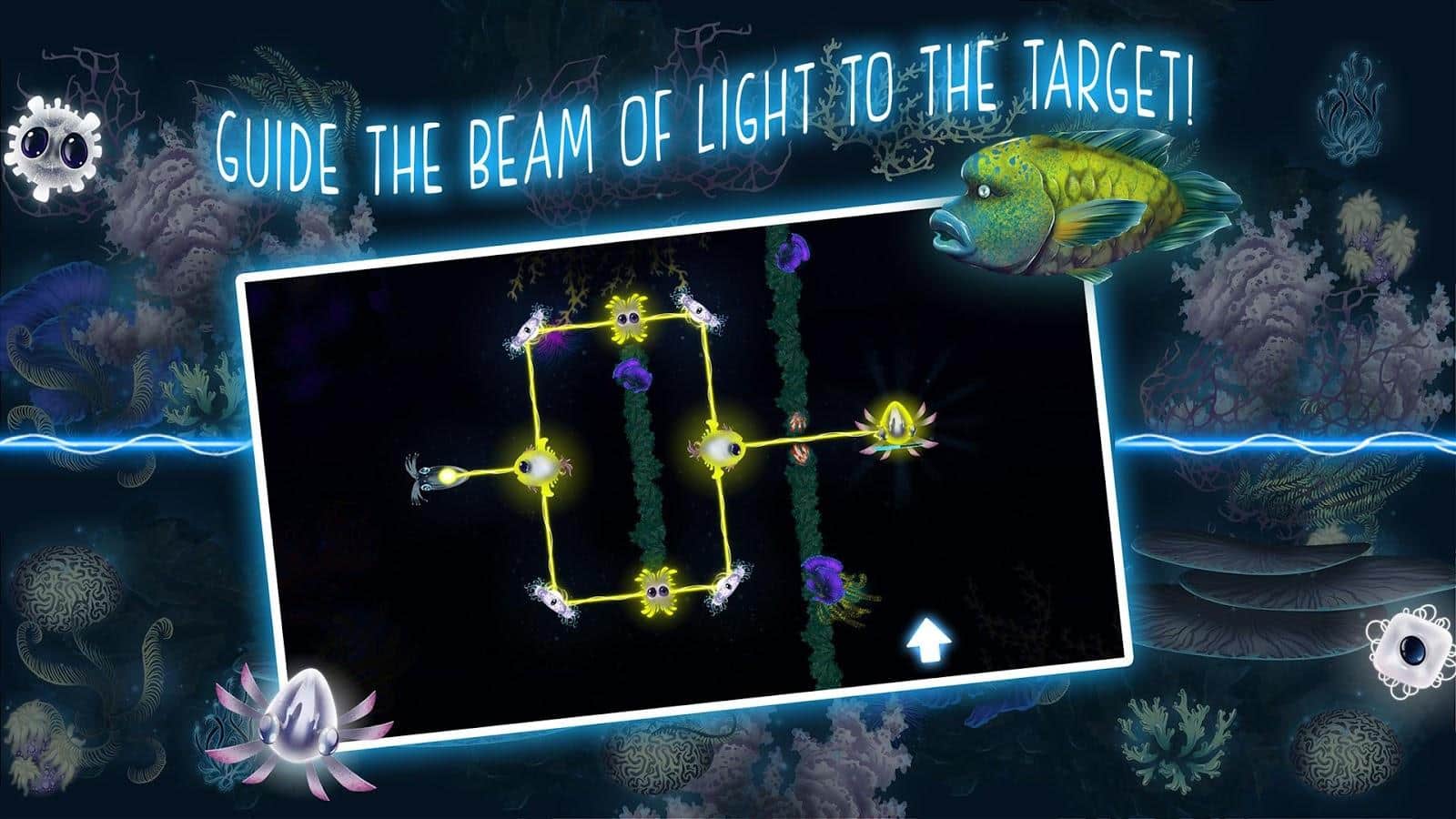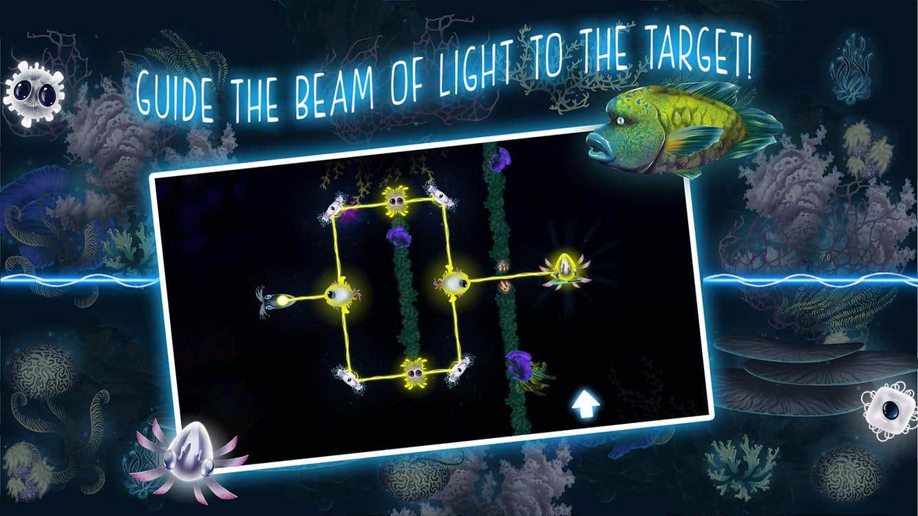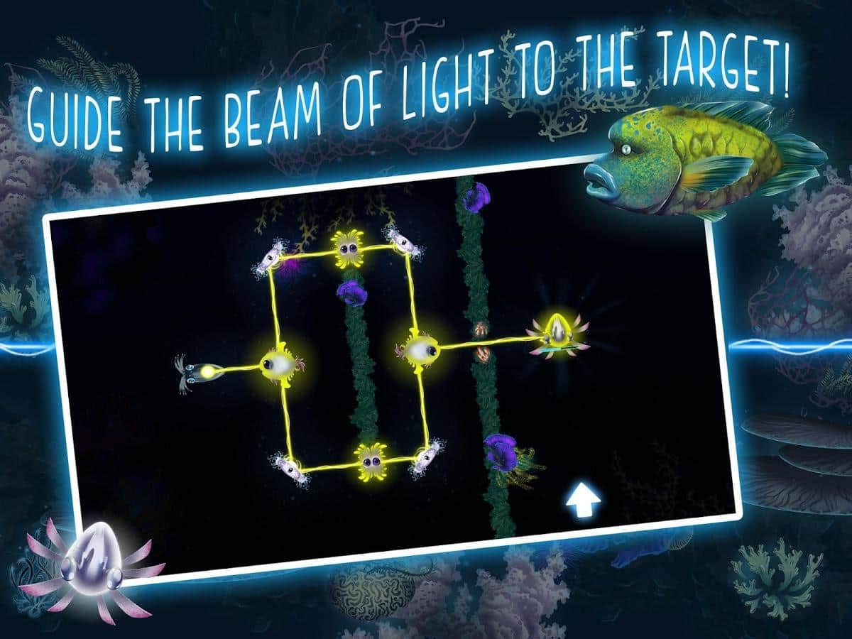 Glowing Darkness - Це гра для всіх віків, адже тут ви зможете прокачати свій мозок. Дуже цікава головоломка, з безліччю рівнів, в кожному новому рівні, завдання будуть ставати все складніше. У вашому розпорядженні, мешканці морських глибин, а ваша основна задача, це освітить ці морські глибини. І їх жителі вам в цьому допоможуть, використовуйте різних риб, та іншу живність що б згинати напрям променя світла, і довести його прямо до виходу. Одні з риб будуть допомагати вам з поворотами, інші ж, зроблять з одного променя, два. З кожним новим рівнем, елементів буде ставати все більше, а рівні все цікавіше. Так само, варто зауважити, що в грі досить приємна музика.