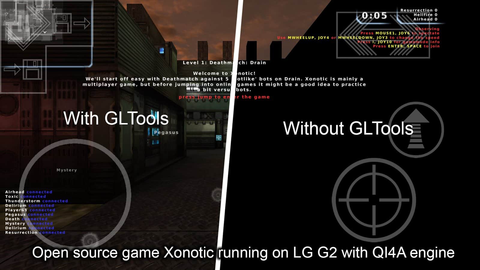 GLTools – це інтерфейс OpenGL драйвер, сумісний з будь-якими OpenGL ES 2.0 GPU і ARM-процесорами. На жаль x86 процесори не підтримуються, наприклад, Galaxy Tab 3. Найближчий аналого цього додатка Chainfire3D.