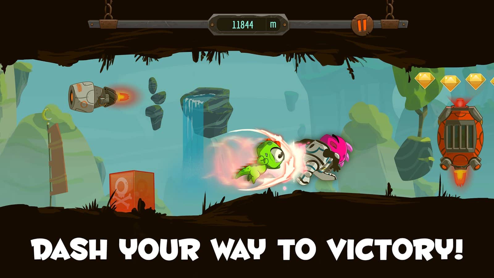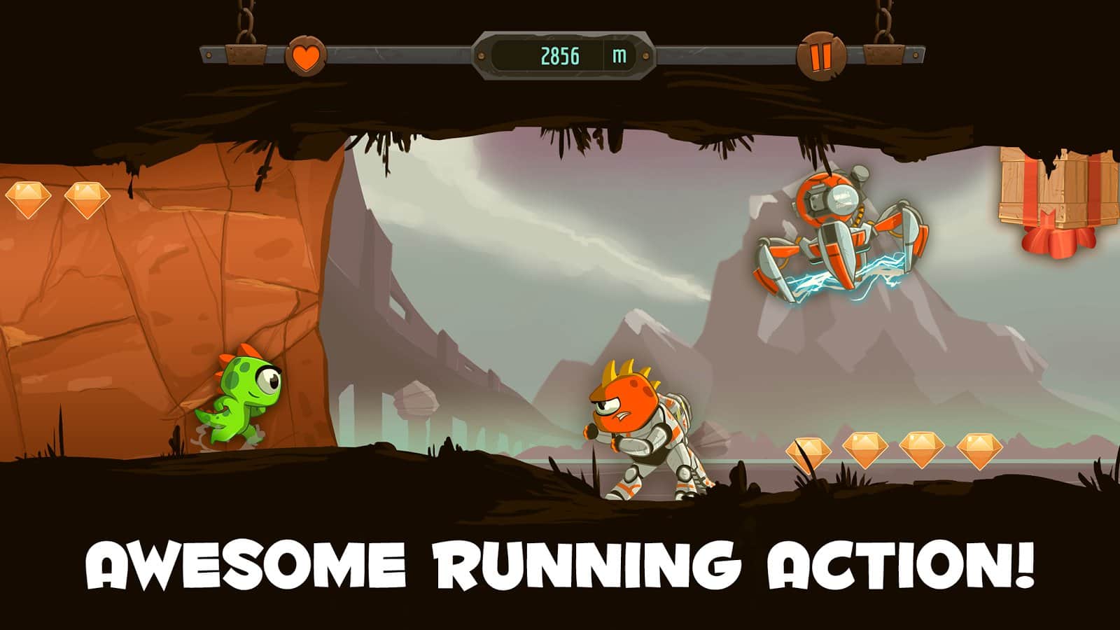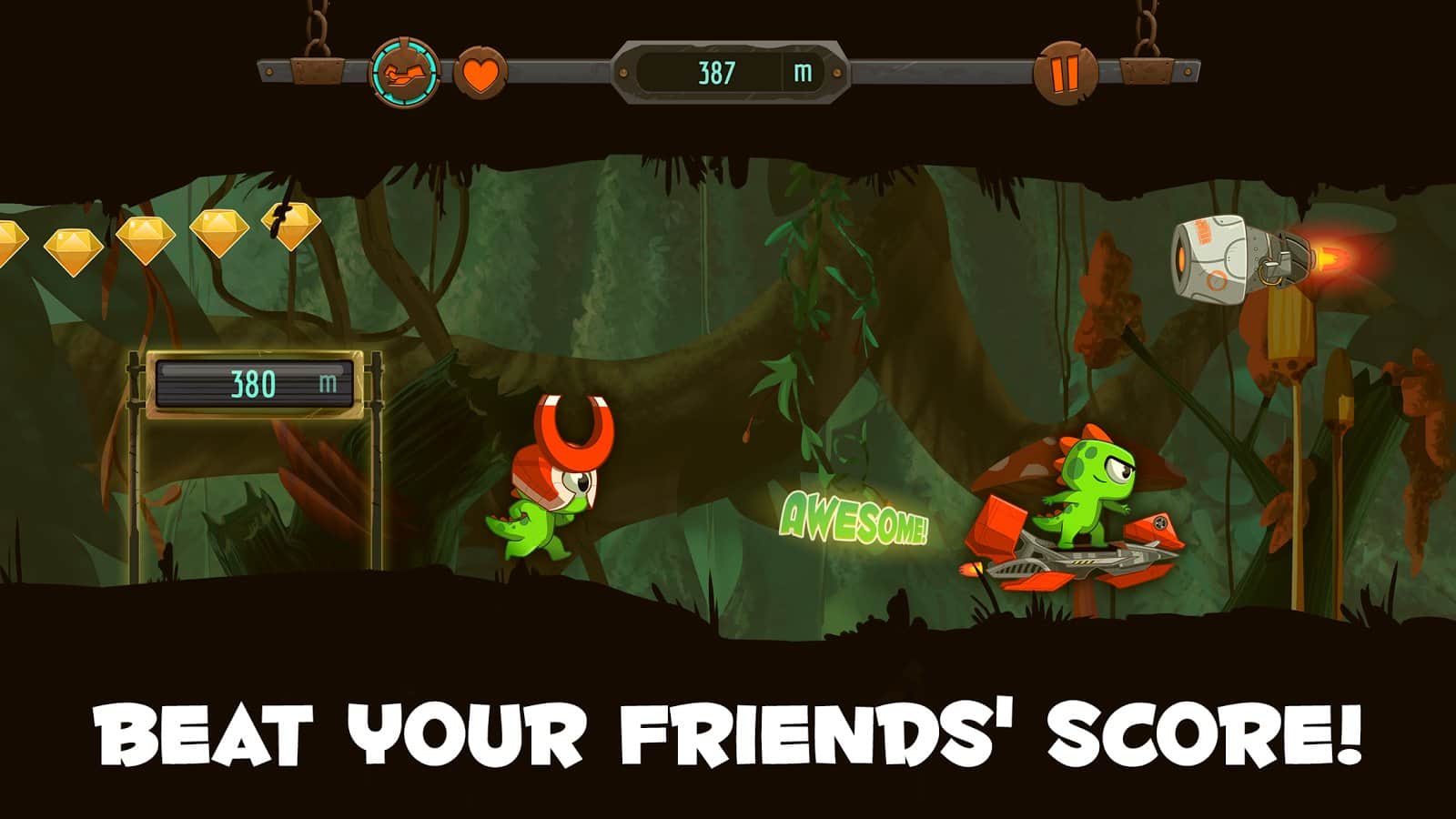Go Kizi Go! - Захоплюючу пригоду маленького динозаврика по імені Кізі. Він повинен пройти мимо всіх своїх суперників використовуючи гравітацію або свою здатність прискорення. Для того що б змінити полярність, вам всього лише потрібно натиснути один раз по екрану, і він переміститься з підлоги на стелю, а якщо ви натиснете в іншу частину екрана, то дуже різко рвоне вперед знищуючи ворогів на своєму шляху. Однак пам'ятайте, що не всі вони можуть бути збиті вашою силою, деяких все ж доведеться перестрибувати! Збирайте монети і покращуйте свого героя.