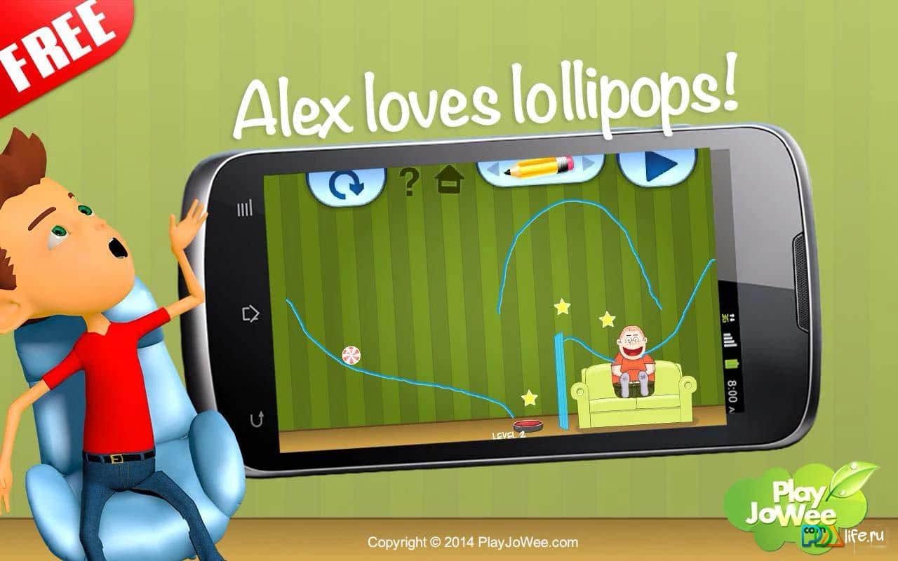 Голодный Алекс - Один Дома / Hungry Alex - игра на аndroid, в которой вам необходимо накормить голодного мальчика. С помощью пальца и сенсорного экрана вам предстоит рисовать путь, по которому будет перемещаться конфетка, сделайте это так, чтобы она попала прямо в рот Алексу. Вас ждут 20 захватывающих уровня с яркой мультяшной графикой и веселым музыкальным сопровождением.