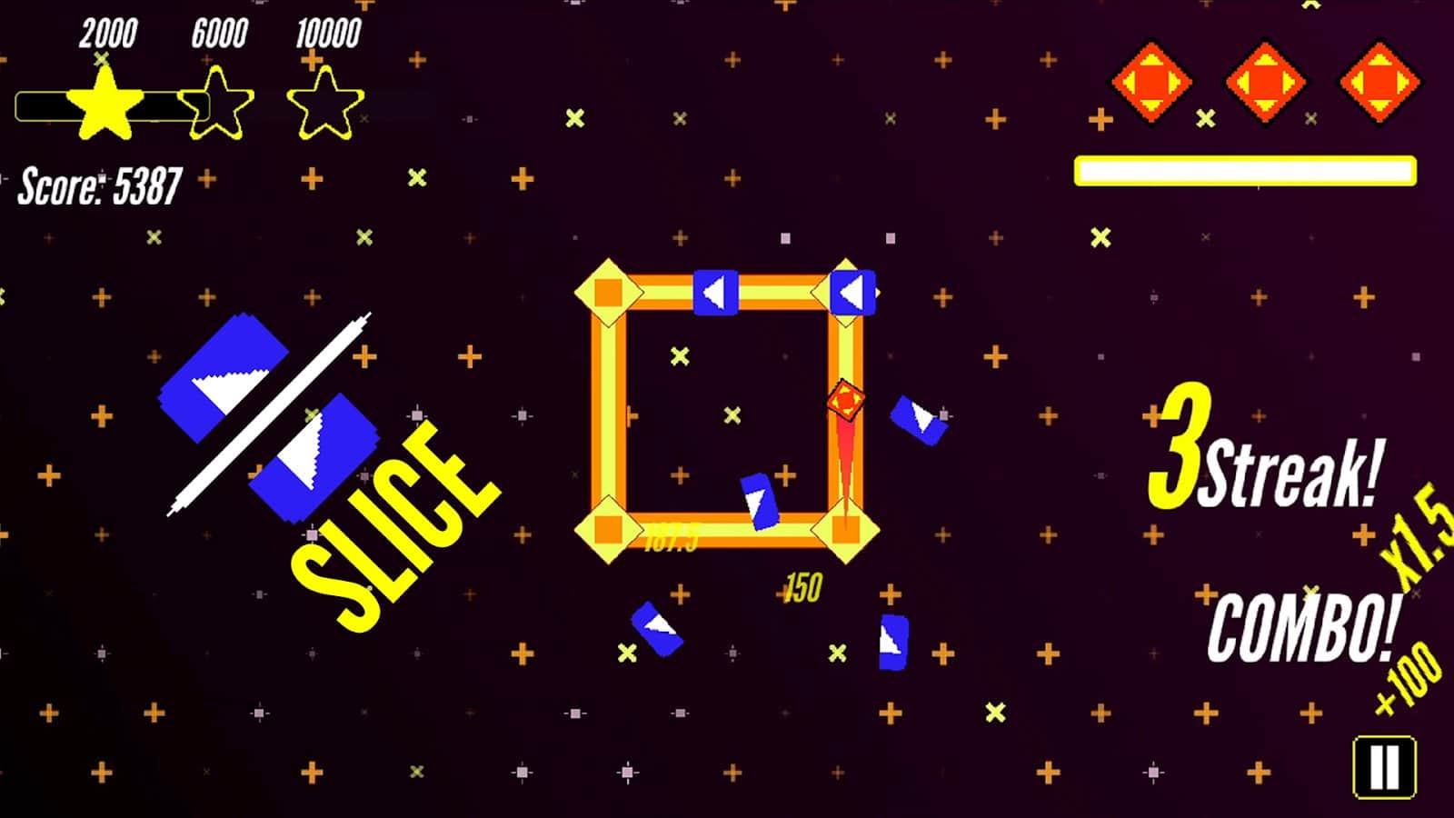 Режим Slice - основний режим гри. Розрізайте блоки, уникайте мін і прагніть до рекордів. Створюйте серії та комбо, щоб збільшувати свій рахунок і насолоджуватися динамічним процесом.