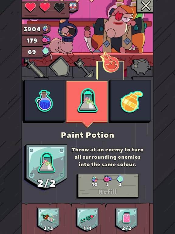 Grindstone - Проберитесь вперед через натовпи орків і монстрів, які будуть вам заважати. Візьміть з собою найкраще зброю і спеціальні здібності, так як вас чекають цікаві головоломки, рішення яких можливо не завжди буде легким. Боріться з потужними босами, збирайте корисні предмети, впевнено пробирайтеся до своєї мети і станьте не тільки багатим, але і відомим. Беріть участь у всіх сутичках, де слід ретельно напружити мозок, щоб впоратися з будь-якими перешкодами на 200 доступних рівнях.