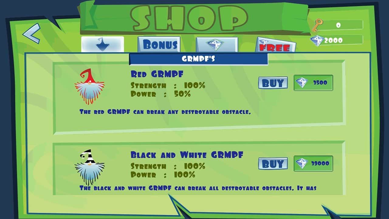 GRMPF'S – Отличная аркада на андроид, в которой вам предстоит помочь маленьким бородатым существам, которые случайно упали с вершины горы, вернуться домой. Запускаем милого бородача в воздух, стараемся собрать в полёте как можно больше драгоценных камней.