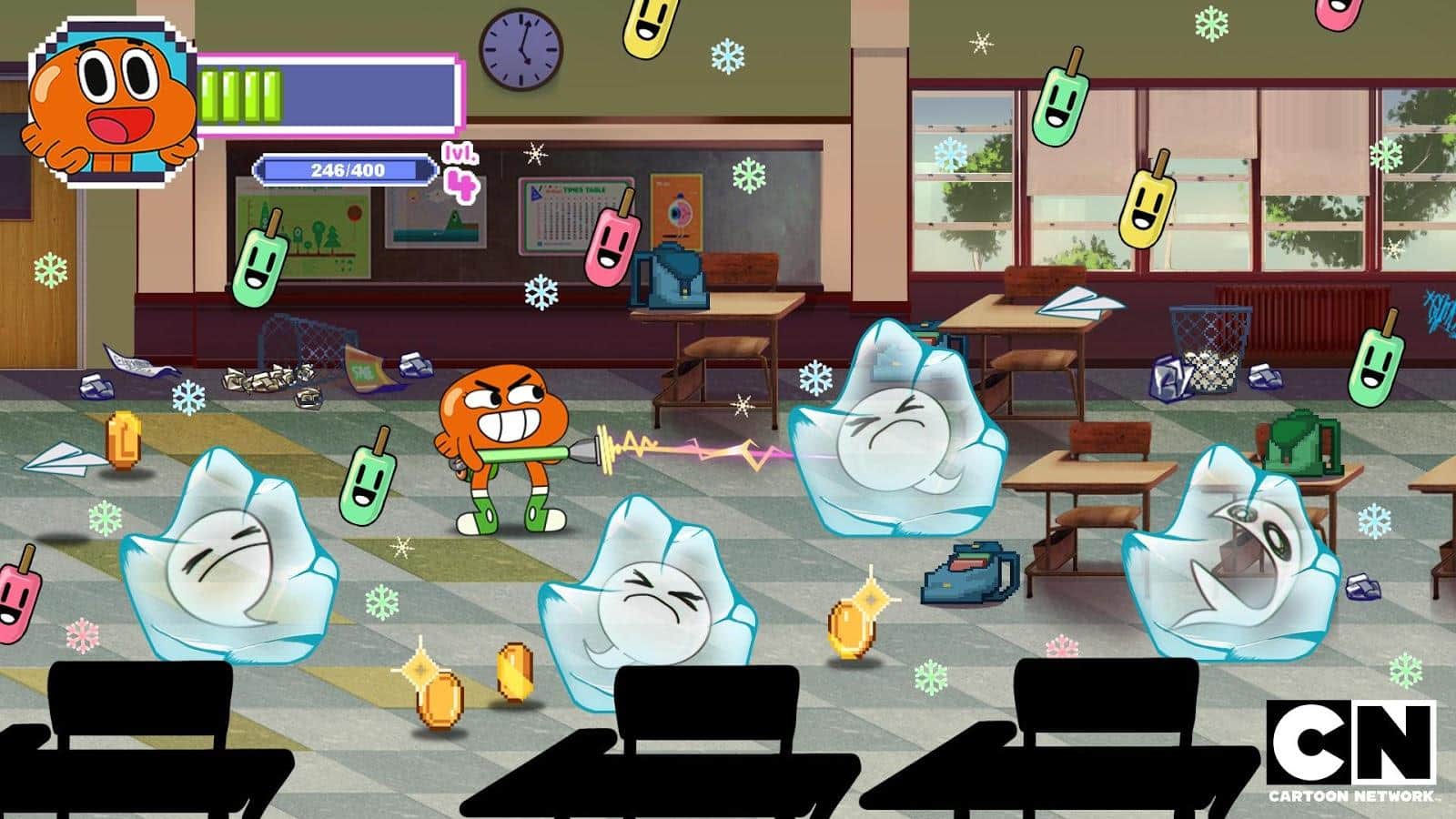 Gumball Ghoststory! – вірно кажуть, не читайте заборонені книги, але троє друзів Гамболл, Дарвін і Анаіс прочитали розповідь про привидів, і вони з'явилися власною персоною. Тепер сім'ї героїв в смертельній небезпеці. Вступите з ними в бою і використовувати всі підручні предмети – від швабри до пилососа. Переміщайтеся серед локацій і відвідайте школу, парк і багато інші ігрові зони. Проходьте квести і вирішуйте головоломки. Заробляйте гроші, купуйте покращене спорядження, щоб очистити місто від примар.