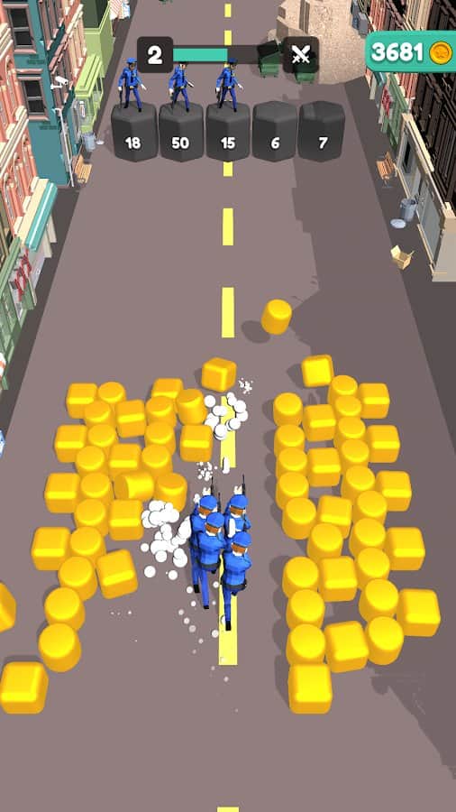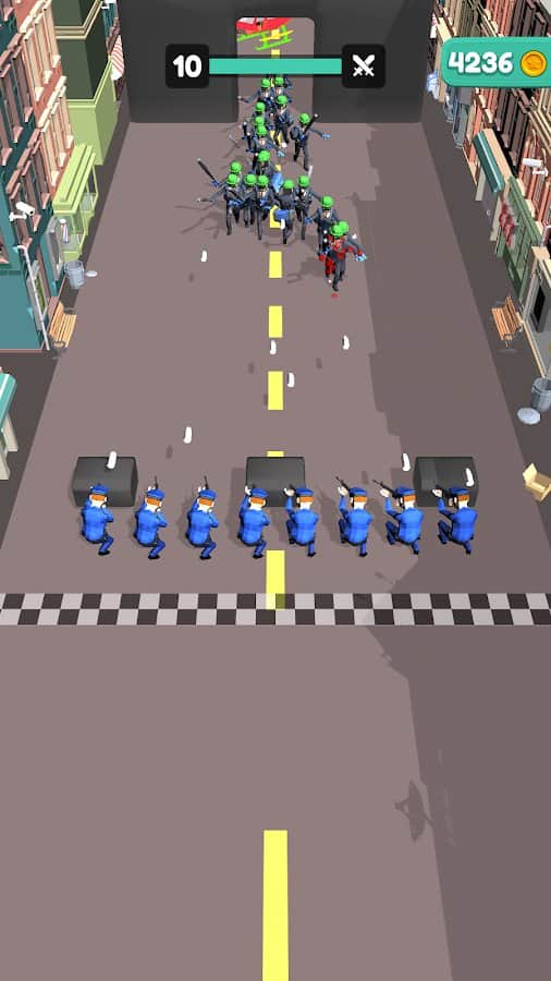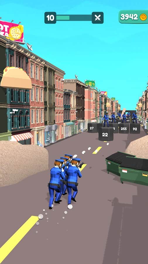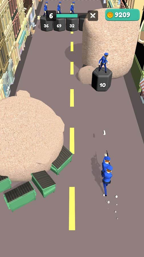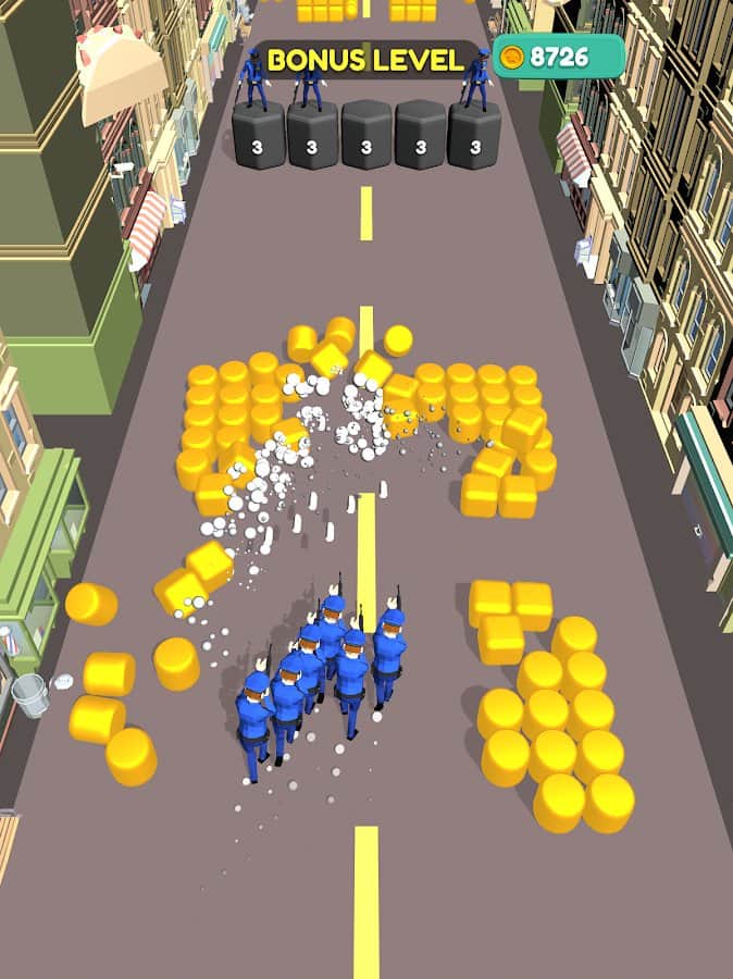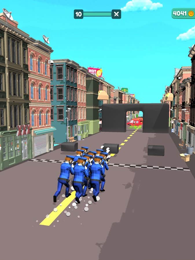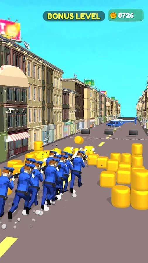 Збирайте свою команду, будуйте правильну стратегію і проходите перешкоди різних рівнів. Чим більше людей ви зберете на своєму шляху - тим вище шанс на перемогу і славу. У фіналі не дайте грабіжникам втекти на вертольоті - об'єднайте свої сили і зі всієї сили стріляйте, поки не вб'єте всіх! У грі також присутній валюта у вигляді золотих монет. Головні переваги - красива і барвиста графіка, всі будинки в місті абсолютно різні. Сподобається ігроманам, які хочуть постріляти і відчути себе рятувальниками.