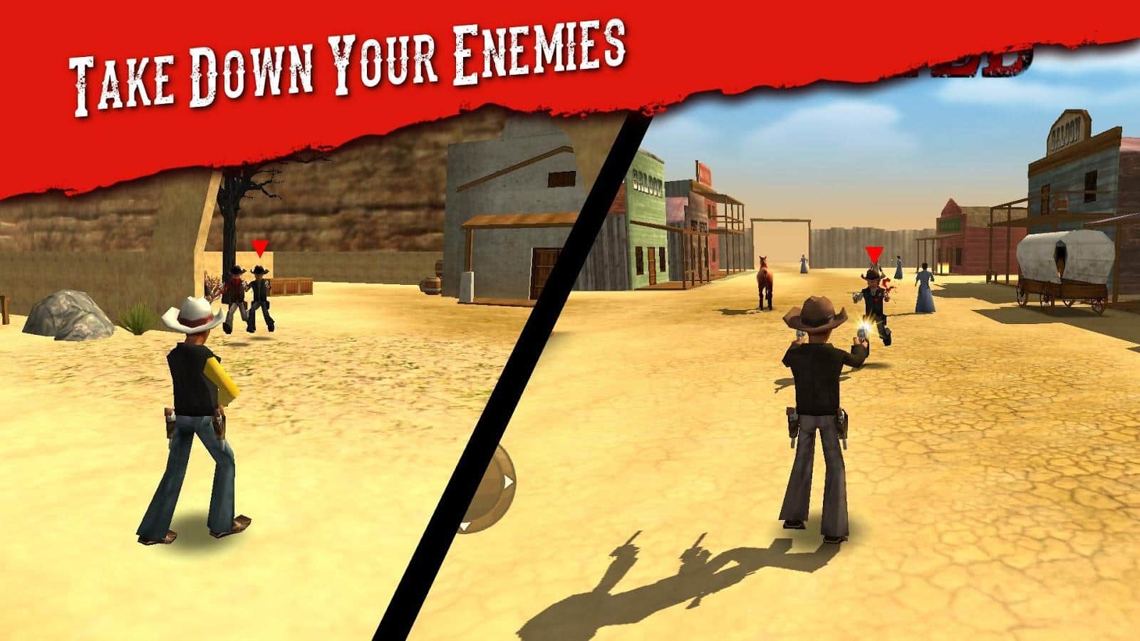 Guns and Spurs - Новий і вельми незвичайний підхід до вестернів. Ця гра розповість нам історію одного ковбоя, який одного разу взяв у руки парочку новеньких револьверів і відправився підкорювати дикий захід. Варто зауважити, що це гра з відкритим світом, вільної системою завдань а так само безліччю різних міні ігор де потрібно заробляти гроші. Управління в цій грі так само дуже просте і здійснюється з допомогою пари кнопок, та ще до того ж є автоматичне наведення на ціль, так що все що вам залишається-це бігати і стріляти!