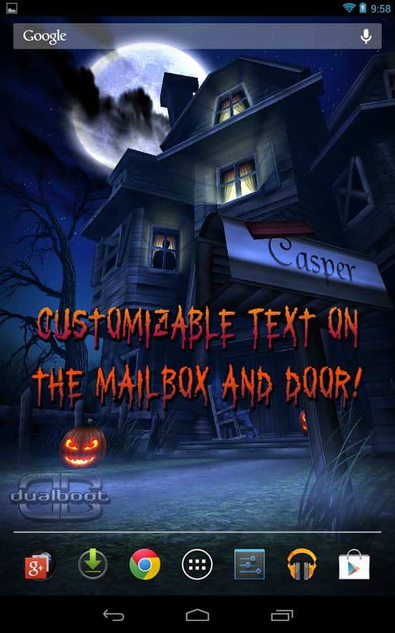 Haunted House HD – живі шпалери в стилі Хелловін на андроїд, де вам належить досліджувати покинутий будинок. У переддень наближення ночі Хеллоуїн встановіть ці живі шпалери у свій телефон і насолоджуйтеся лякаючими і жахливими сценами. Відвідайте будинок з привидами, який повний привидів, паранормальних явищ та інших несподіваних сюрпризів. Досліджуйте кожну кімнату і знайдіть у цих шпалерах, щось цікаве для себе. Обійдіть стороною сердиту гарбуз і встановіть налаштування по всьому розсуд. Почніть відзначати цей страшний день, вже сьогодні занурившись в похмуру обстановку.