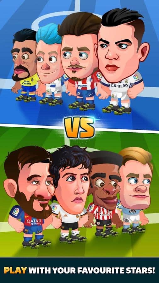 Head Soccer La Liga - Эта игра - это официальное приложение Испанской футбольной лиги сезона 2014 - 2015. Насладись последними футбольными матчами в Лиге BBVA. Всего лишь выбери любимую команду, выйди на поле и покажи свои навыки, чтобы выиграть все футбольные матчи! Ты будешь участвовать в товарищеских матчах, но потом выигрывая и двигаясь по турнирной вы доберетесь до Челленджа. Но он доступен только для лучших игроков! Поэтому играй так, как этот матч у тебя последний! Сможешь ли ты стать Чемпионом? Докажи это!