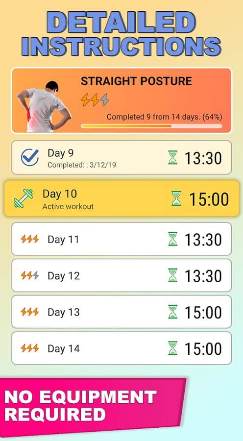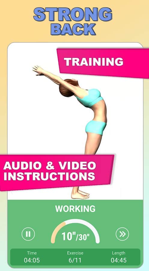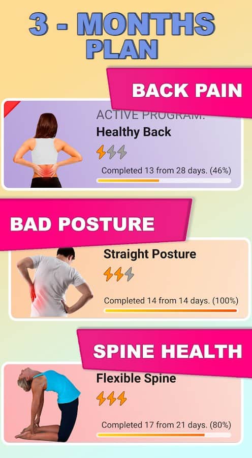 програма & quot;Здорова спина і пряма постава" допоможе виправити проблеми з хребтом і гнучкістю тіла тим, хто цього потребує. Вона включає в себе більше 90 різних технік на зміцнення м'язів і розвиток гнучкості. Таким чином, корекція постави можлива і в домашніх умовах, адже професійні відео-та аудіоуроки з докладним описом здатні творити чудеса і позбавити вас від болю в спині, скутості в рухах і порушення кровообігу. Ведіть статистику результатів, включайте оповіщення, дотримуйтесь рекомендацій і відстежуйте прогрес на шляху до здорового хребта.