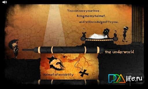 -у цій головоломці для андроїд вас чекає захоплююча подорож у світ Стародавньої Греції. Античний світ, міфи, герої, боги, таємничі знаки і письмена і багато іншого чекає любителів античності. Щоб пройти гру, доведеться розгадати чимало складних і не дуже головоломок і загадок. занурившись з головою в світ давнини, ви в кінцевому підсумку настільки проникніться духом античності, що зможете інтуїтивно відчувати деякі розгадки. Вообщем, гра затягує з перших секунд. А щоб проходити всілякі загадки було цікавіше-є і сюжет - у вашого лицаря викрали прекрасну принцесу. Ось якраз і в пошуках її доведеться поворухнути звивинами дуже навіть не слабо!