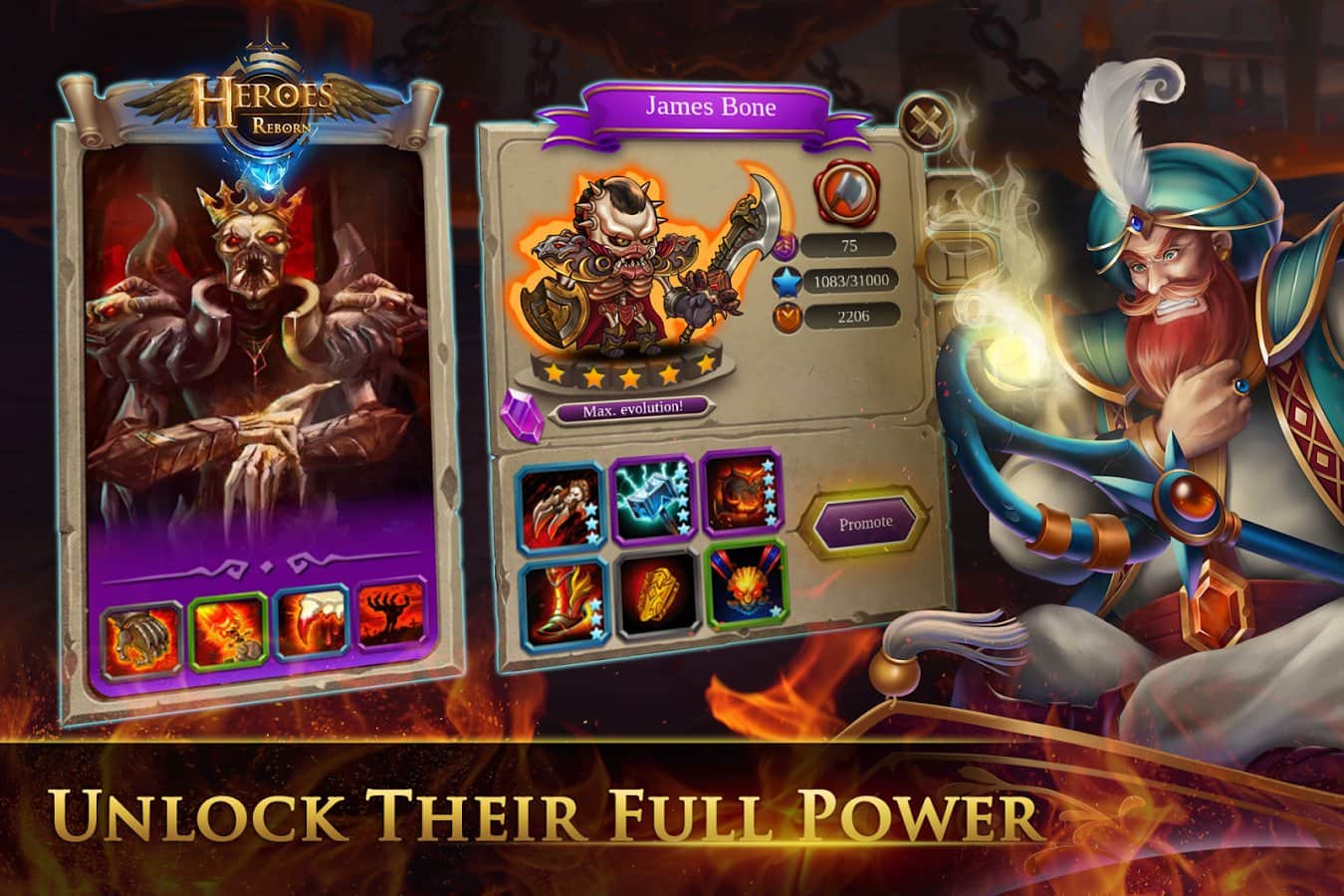Heroes: Reborn - покрокова стратегічна rpg гра, в якій вам належить виступити в ролі командира невеликого загону доблесних воїнів, відважного б'ються в будь-якій битві. Для перемоги над супротивником вам необхідно тактичну перевагу, яке може дати тільки грамотний тактик і стратег. Тільки грамотне розподіл сил і використання всіх наявних навичок в загоні допоможуть вам досягти перемоги. У грі ви будете конкурувати на pvp арені між реальними гравцями за звання кращого командира. Створіть свою непереможну команду героїв і прагнете всебічно їх розвивати.