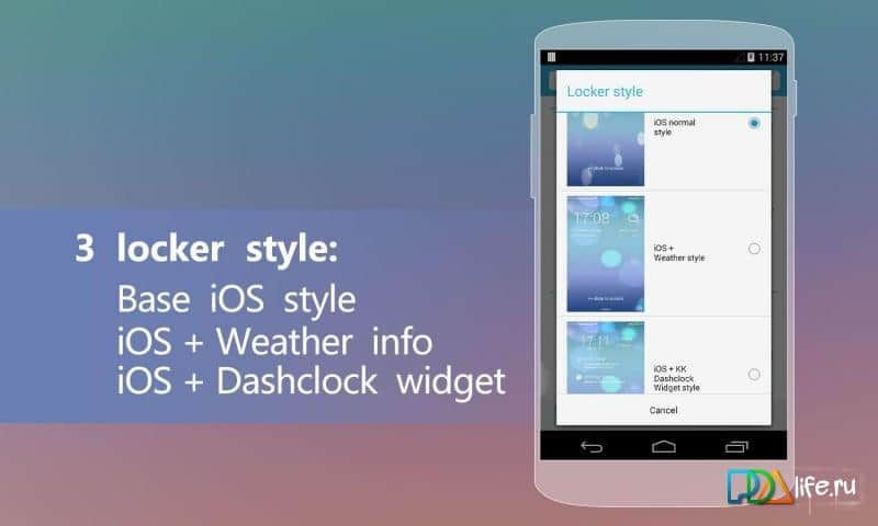 HI LockScreen - відмінний Locker з 3D Parallax ефектами. Програми виконано на відмінно і чудово виглядає як на мобільних телефонах з невеликими екранами, так і на планшетах з великою діагоналлю. Locker використовує стиль сильно нагадує такий в ipad і iphone з встановленою на них IOS 8. Природно підтримуються користувальницькі шпалери. Присутня підтримка встановлення PIN-коду для підвищення безпеки вашого девайса. Швидкий запуск основних додатків з меню блокування: камера, набір, годинник, ліхтарик, калькулятор. Присутня підтримка зміни колірної схеми.