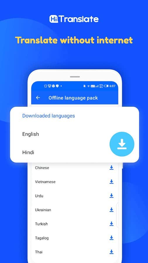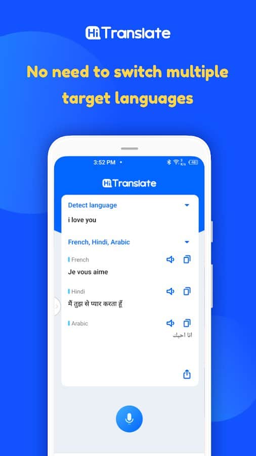 за допомогою мовного перекладача Hi Translate ви за лічені секунди зможете перевести незнайому вам мову в тексті і зображеннях, а також популярних месенджерах. Ви можете перевести Тексти З англійської арабської та інших мов швидко і в один клік на екран за допомогою голосового управління і автономного режиму роботи. Перекладайте тексти з Al Camera за допомогою міжплатформенного перекладу, таким чином ви безперешкодно зможете спілкуватися і розуміти будь-який проглядається контент. На картинках розпізнавання перекладу відбувається в автоматичному режимі. Програма працює і в режимі оффлайн.