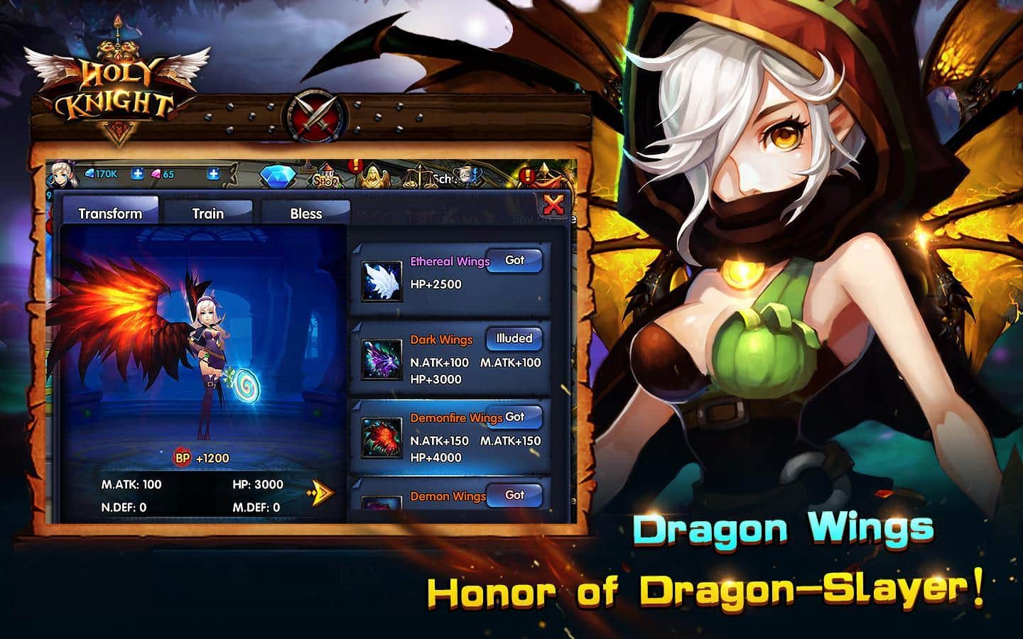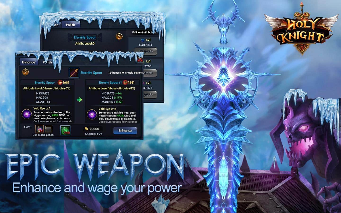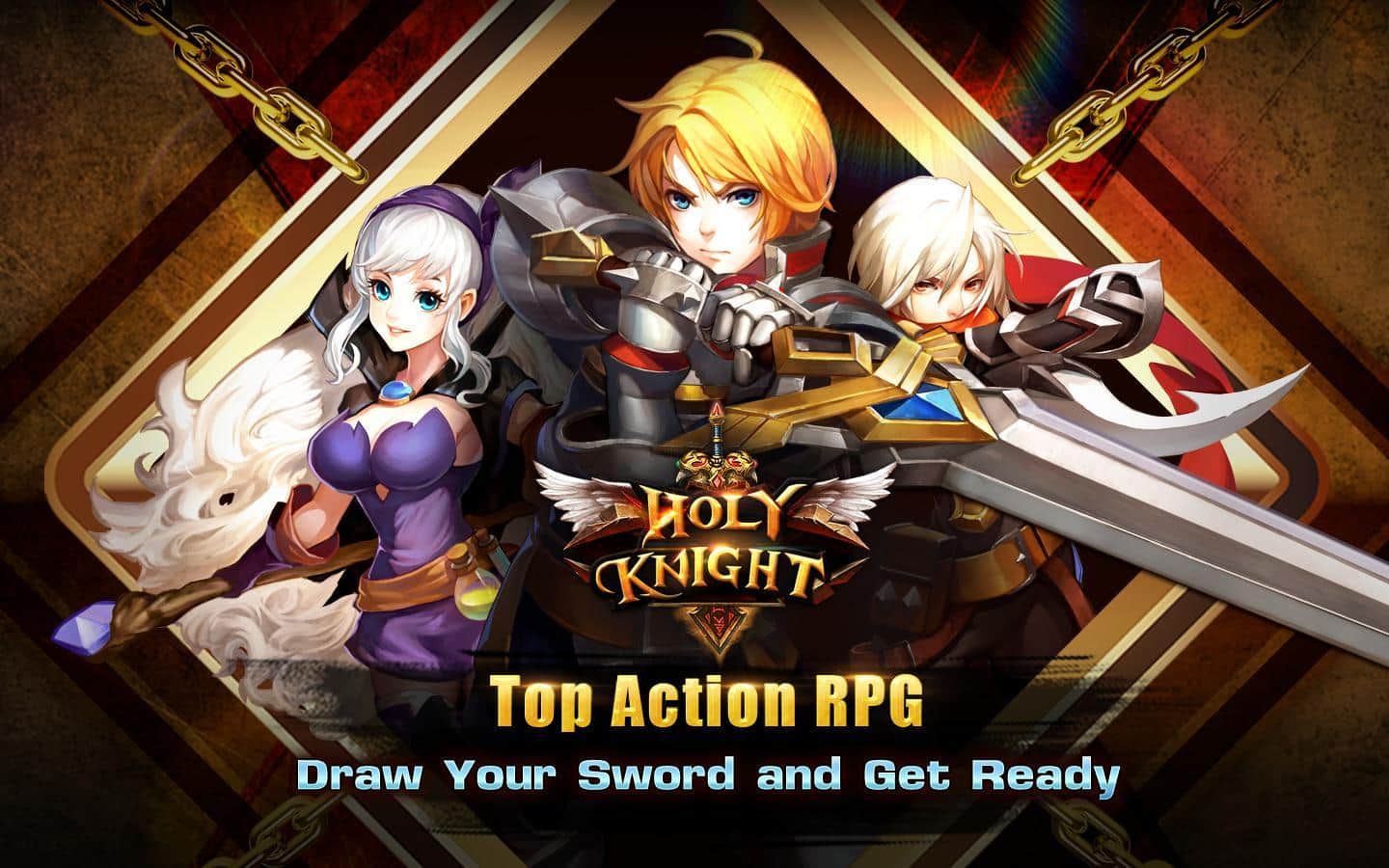 Holy Knight EN – захистіть світ від знищення з допомогою різних героїв. Вибирайте собі героя серед магів, воїнів і вбивць і беріть участь в динамічних і грандіозних битвах, знищуючи вампірів, демонів і монстрів. Кожен персонаж має свій унікальний стиль ведення бою і володіє унікальним зброєю. Пориньте в фантастичний світ, повний пригод і боїв і захистіть його від знищення. Покращуйте свого героя після кожного бою, приміряючи нові обладунки та неповторні характеристики. Разом з друзями прокладаючи собі шлях до слави серед численних ворогів і устаивайте бої на арені.