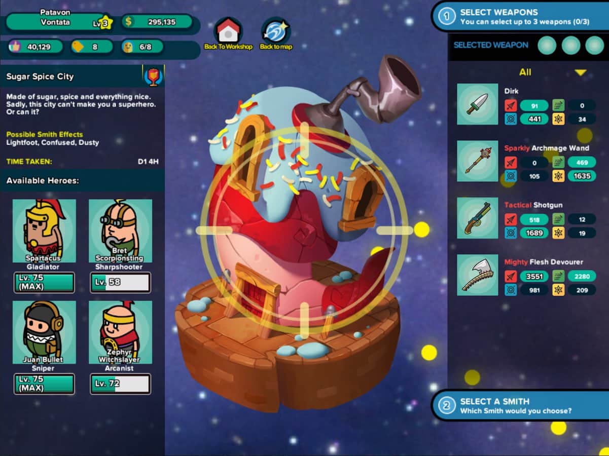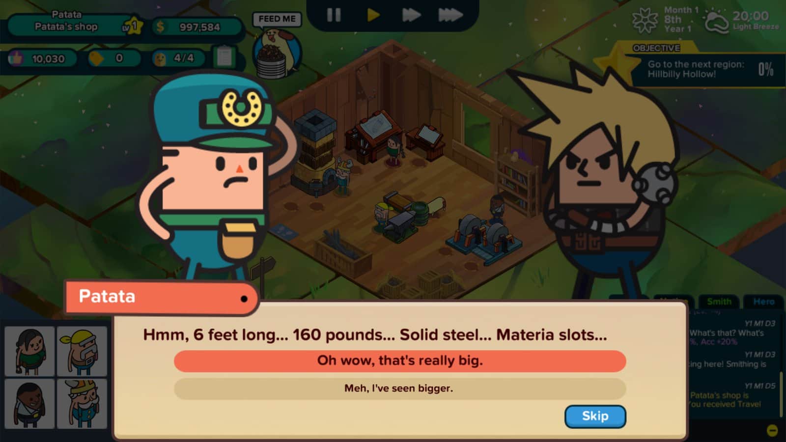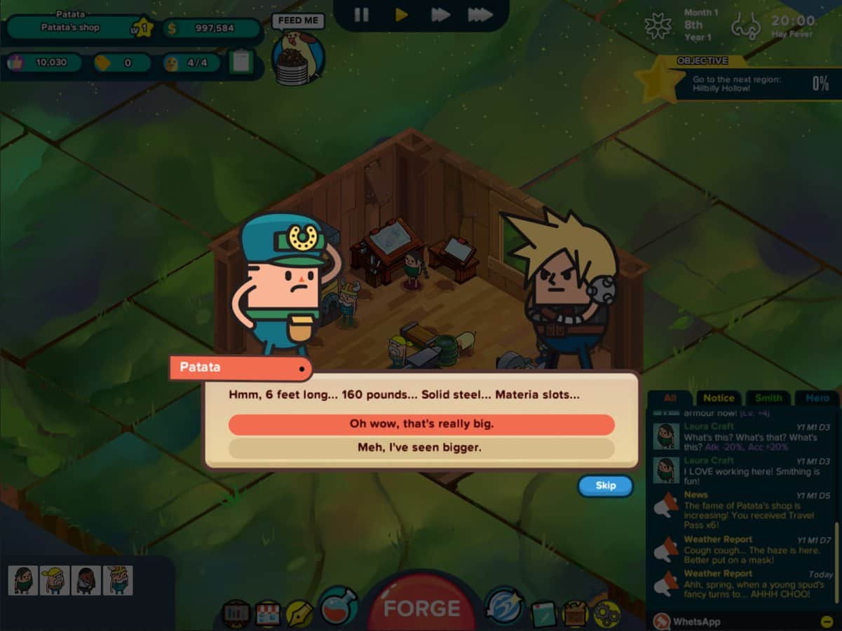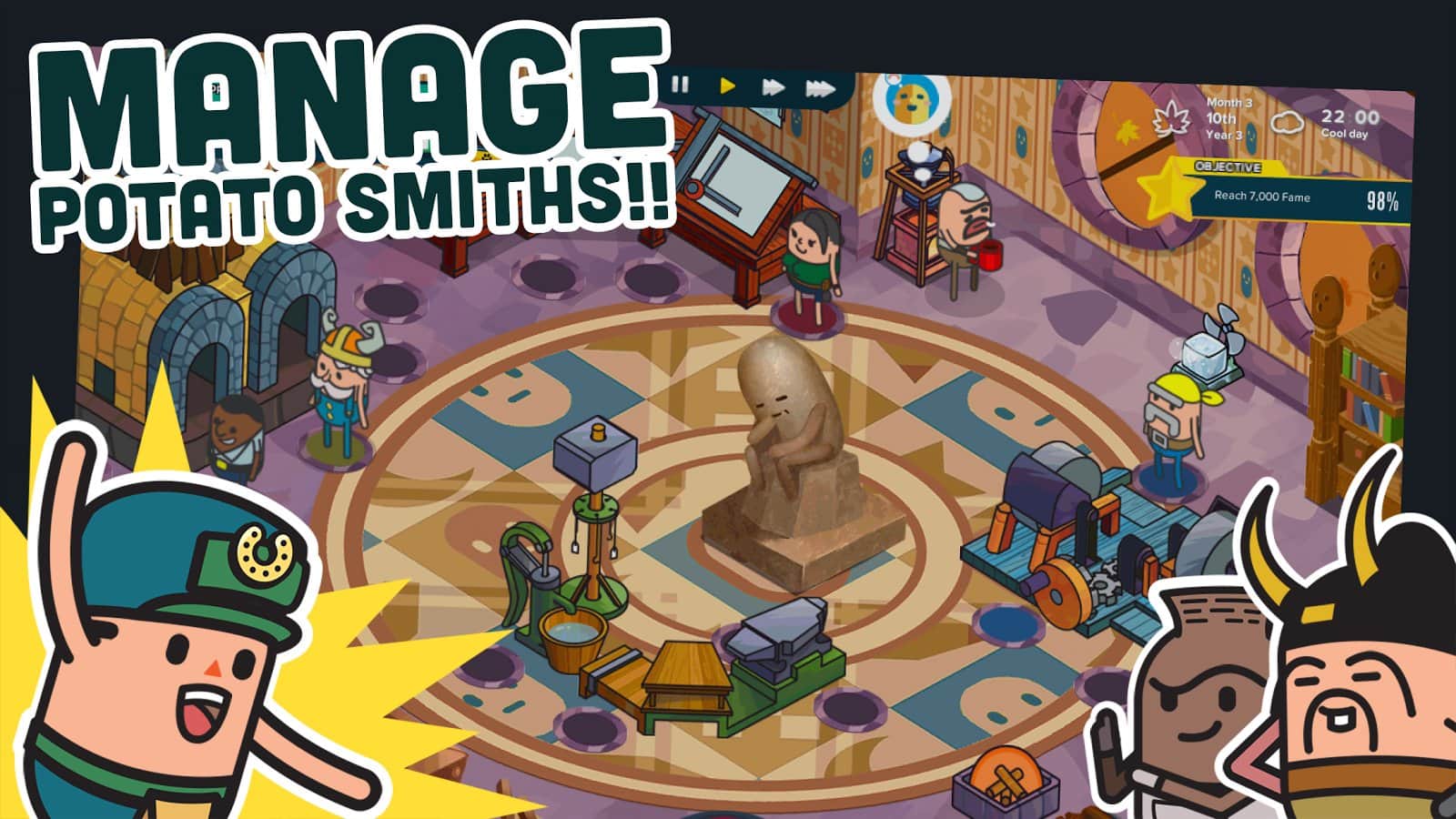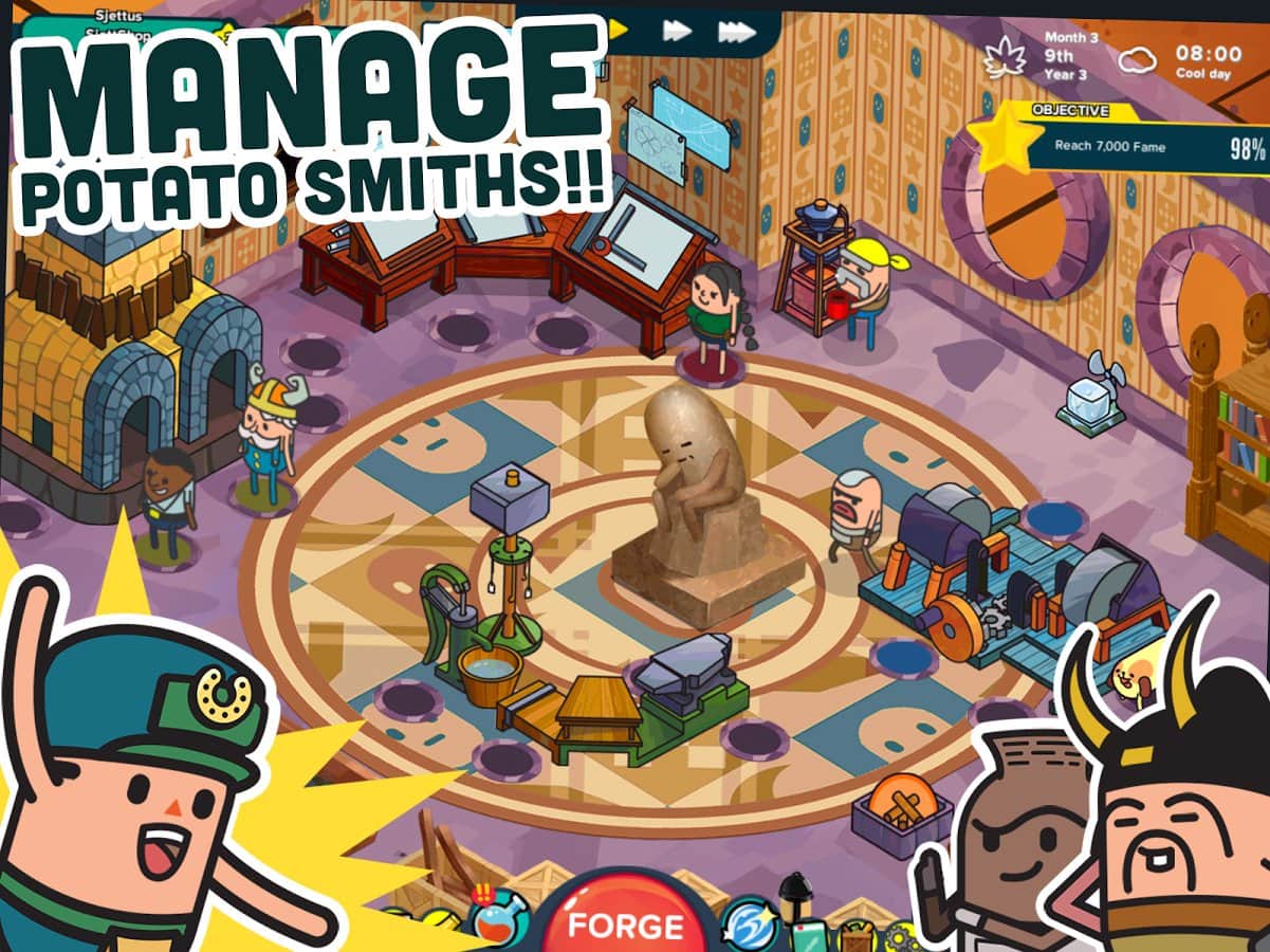 Holy Potatoes! A Weapon Shop?! – захоплююча гра на андроїд, де ви будете створювати зброю. У цій грі ви візьмете під свій контроль збройовий магазин, в якому працюватимуть ковалі-картоплини і створювати зброю. Вашим завданням буде приймати замовлення на виготовлення зброї і приступати до роботи. Створюйте унікальне і неповторне зброю розширюйте свій бізнес до неймовірних розмірів. У грі представлено більше 70 героїв-картоплин, 200 видів зброї, 30 ковалів і 10 легендарних героїв поп-культури. Дослідіть картопляний світ і шукайте потрібні вам матеріали, реліквії і заклинання. Створіть неповторний зброю для героїв поп-культури.
