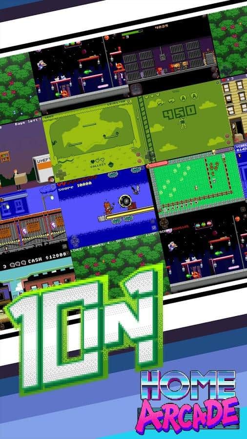 Home Arcade – аркада в ретро стилі на андроїд, яка перенесе вас в 80-е роки. У цій грі вашою головною задачею буде допомагати головним героям, виконувати різні місії і завдання. У грі ви будете подорожувати по різних світах, підкоряючи Дикий Захід, вирушаючи в захоплюючу подорож у відкритий космос, досліджуючи темні підземелля або освоюючи величезні міста. Управляйте численними героями і допомагайте їм знищувати ворогів. Вас чекають різні випробування і місії, і лише спритність пальців і відмінні рефлекси допоможуть вам виконати їх. Всього в грі представлено 10 легендарних ігор, таблиця лідерів і захоплюючий ігровий процес.
