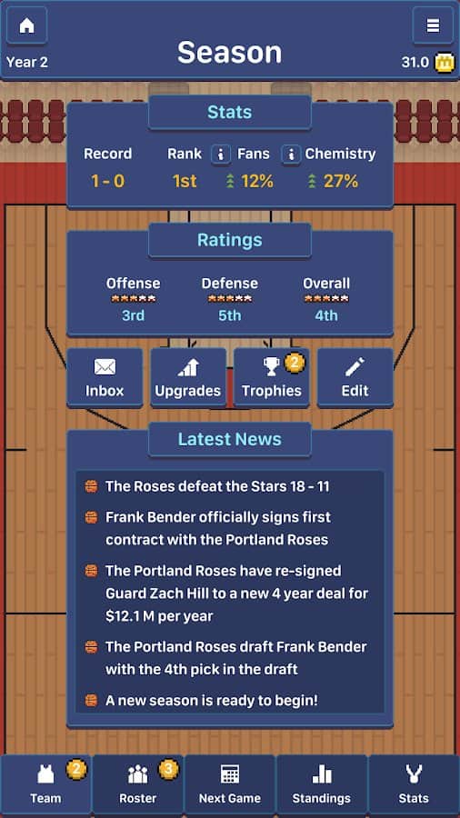 Hoop League Tactics - спортивний, баскетбольний менеджер на баскетбольну тематику Візьміть під контроль свою баскетбольну команду і приведіть її до беззастережної перемоги на всіх турнірах. Управляйте своїми гравцями в покроковому режимі. Досить незвичайний ігровий процес, який у першу чергу на цільна на тактику і стратегію ведення гри. Кожен крок дуже важливий, тому необхідно витрачати його з розумом. Особисто мені гра сподобалася, малювання піксельна, що абсолютно не заважає ігрового процесу.