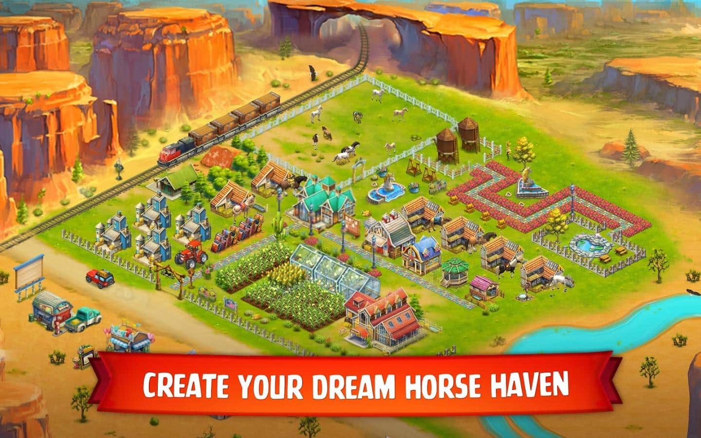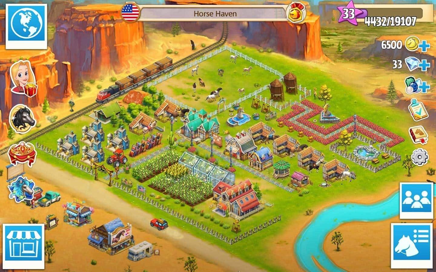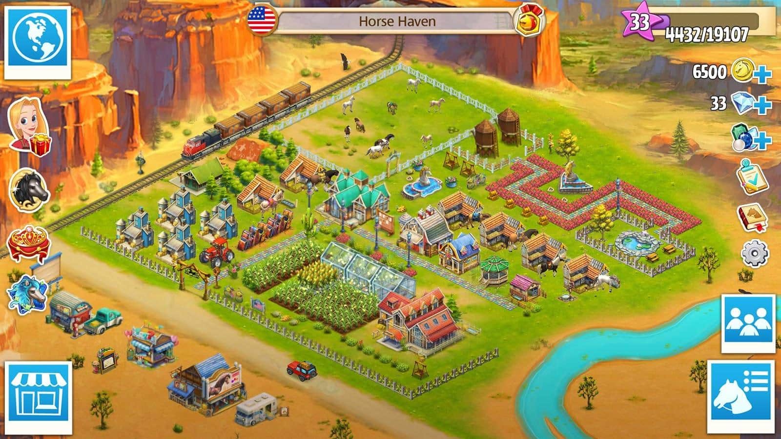 Horse Haven World Adventures - Ця гра допоможе вам зробити рай для коней в будь-якій точці земної кулі. Управляйте ідеальної кінської фермою і виростите в ній ідеального чотириногого друга, з яким ви зможете взяти участь на скачках з перешкодами та ін. заняттях. Створіть господарство світового масштабу: ранчо в США, стайню у Франції... Поблагословіте на весь світ! Для цього розводьте, збирайте, продавайте і дрессируйте понад 90 коней. Балуйте їх, годуйте, чистіть і виростите майбутніх чемпіонів. А разом з чемпіонами прийміть участь в гонках по дивовижно екзотичним декораціям. Корм для своїх вихованців вирощуйте прямо на фермі, для цього будуйте і покращуйте свої стайні і кормодробилки, щоб перетворити свою стайню в рай для коней. Не забудьте прикрашати свою ферму чарівними предметами декору, щоб підняти настрій своїм підопічних. Знайдіть таких же любителів коней і змагайся з ними, щоб з'ясувати, хто ж краще!
