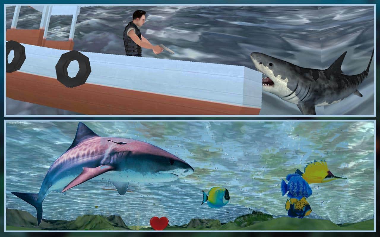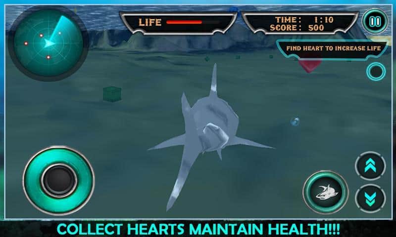 Hungry White Shark Revenge 3D – симулятор на андроид, где вам выпадет отличный шанс управлять огромной белой акулой. Управляйте белой акулой и ищите себе пропитание, а также сражайтесь с вашим главным противником касаткой. Исследуйте огромный подводный мир, наполненный разнообразными рыбами и морскими жителями, такими как киты, тигровые акулы, а также красивыми кораллами и сокровищами. В этой игре вас ждут 15 миссий, начиная от легких и заканчивая сложными, где вам придется сражаться с касатками и рыбаками которые ведут на вас охоту. Вы обладатель самых мощных и острых зубов, так что не дайте себя в обиду и уничтожьте всех своих врагов.