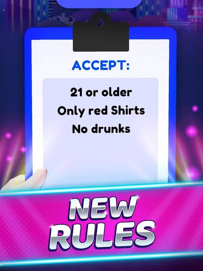 ID Please - Club Simulation - вас коли небудь не пускали в нічний клуб? Тепер тільки від вас залежить хто пройде, а хто залишиться за дверима. Ви новий вибивала найкращого нічного клубу міста, ваша основна задача не дати опинитися в клубі п'яниць і волоцюг. Власник клубу ввів жорсткий фейс-контроль, його клуб потрапляють тільки кращі з кращих. Не пускайте відвідувачів босоніж і в невідповідному одязі. Клієнти в черзі постійно намагатимуться прослизнути повз вас, будьте на чеку, а також не забувайте стежити за порядком в клубі, постійні відвідувачі часто влаштовують бійки. Слідкуйте за порядком і підтримуйте рівень веселощів в клубі!