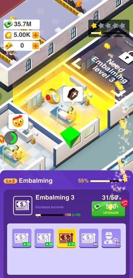 Працюйте над новим бізнесом, який важливий для кожної людини та її родичів. Дізнайтеся, що саме потрібно зробити для розширення цвинтарю та постійно вдосконалюйте його. Розширюйте свою команду, дозвольте людям правильно організовувати похорони, будуйте корисні споруди, допомагайте проводити ритуальні послуги щодня та укладайте угоди з новими священиками, лікарями та іншими працівниками для надання послуг. Поступово ви станете кращим цвинтарем у місті та зможете допомогти живим поховати мертвих.