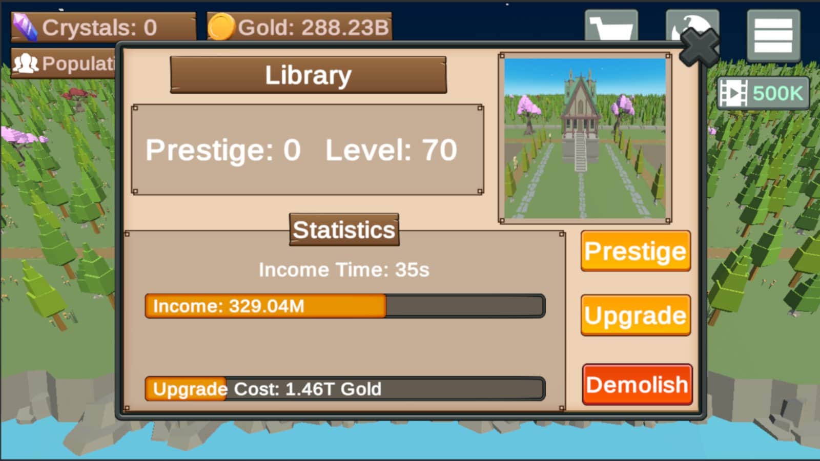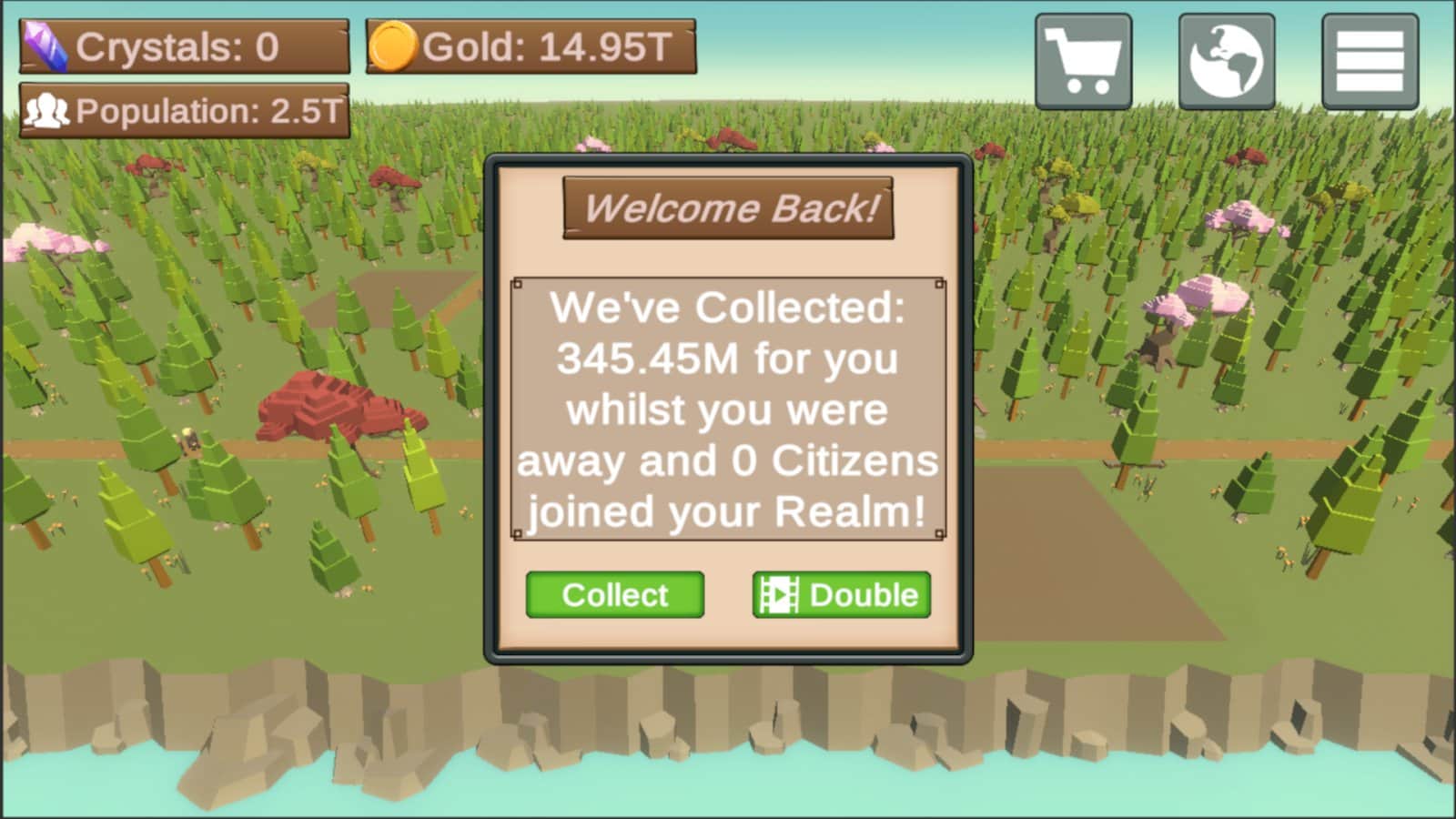 Idle Realm Builder – очольте величезна королівство і об'єднайте під своїм справедливим царюванням 4 раси. Забезпечте їх високим рівнем добробуту і надайте можливість комфортного життя. Увійдіть в еру золотого століття, почніть з розвитку раси людей, очольте людські землі і здобувайте коштовності та золото, розвивайте ремесло та інфраструктуру, проходьте рівні і отримуйте нагороди. Поступово завойовуйте і інші народи, домовляйтеся з ними і укладайте вигідні договори. Налагоджуйте торгівлю і ведіть грамотну політику.