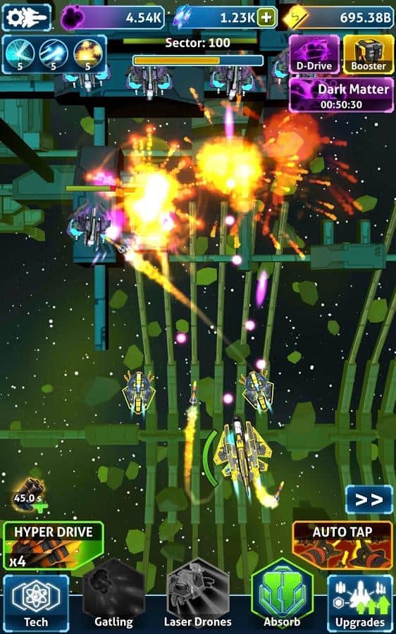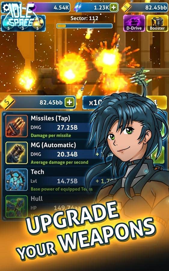 З того моменту як жанр кликкеров отримав просто небувалу популярність розробники всіх мастей і калібрів почали плодити проекти цього напряму, часом радуючи нас цілими пачками релізів. Однак більша частина виходять у світ ігор кликкеров просто не заслуговувала на увагу. Але часом трапляються і приємні сюрпризи у вигляді якісних продуктів наприклад таких як Idle Space - Endless Clicker. Idle Space - Endless Clicker - класичний аркадний кликкер з нескінченним геймплеєм, виконаний в космічному стилі і не позбавлений екшен складової. І так, у вашому розпорядженні космічний бойовий крейсер, за коштами якого вам необхідно знищувати орди ворогів, за які ви будете отримувати преміальні, а на них в свою чергу покращувати корабель і знищувати ще більше інопланетної нечисті.