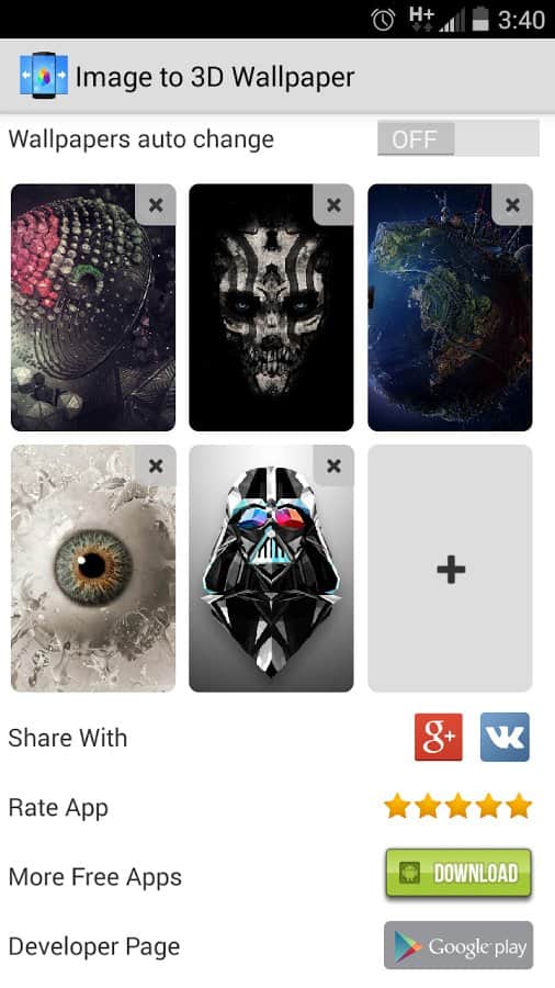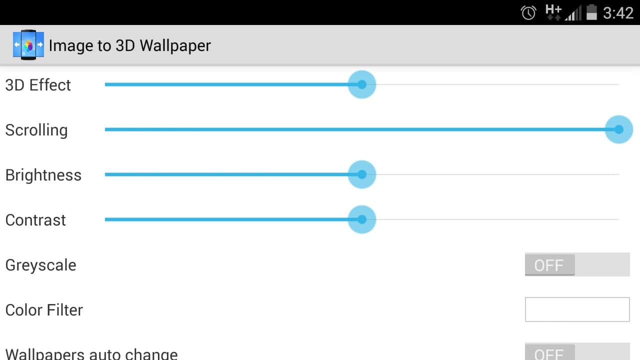 Image to 3D Wallpaper – за допомогою цього додатка ви завжди зможете вдихнути в свої картинки друге життя. Створіть свої шпалери з вражаючим 3d-ефектом. Якісні живі шпалери з 3d ефектом – це чудова можливість прикрасити ваш робочий стіл, та до того ж зробити це своїми руками. Працювати з додатком простіше нікуди, просто відкриваємо потрібне нам зображення, додаємо ваші улюблені шпалери з галереї і встановлюємо зміну шпалер. Нижче наведено список настроюваних ефектів, які можна застосувати до будь зображенні.