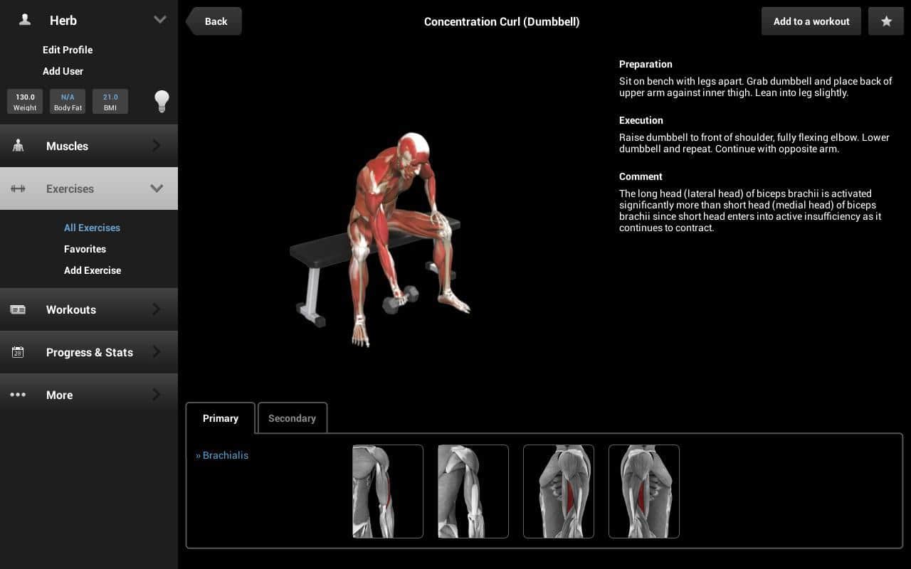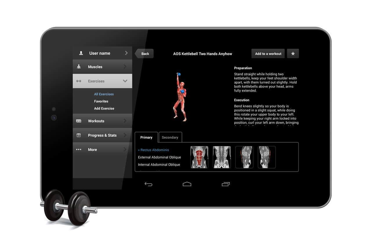 iMuscle 2 - Ця програма являє собою докладний гід по мускулатурі людського тіла і планувальник вправ. Додаток містить більше 650 високоякісних вправ в режимі 3D, так само є можливість створення власних сценаріїв тренувань. iMuscle 2 дозволить вам окремо вибрати будь-яку м'яз людського тіла і вправа допоможе вибрати саме те, що вам потрібно. Призначених для розтяжки або тренування.