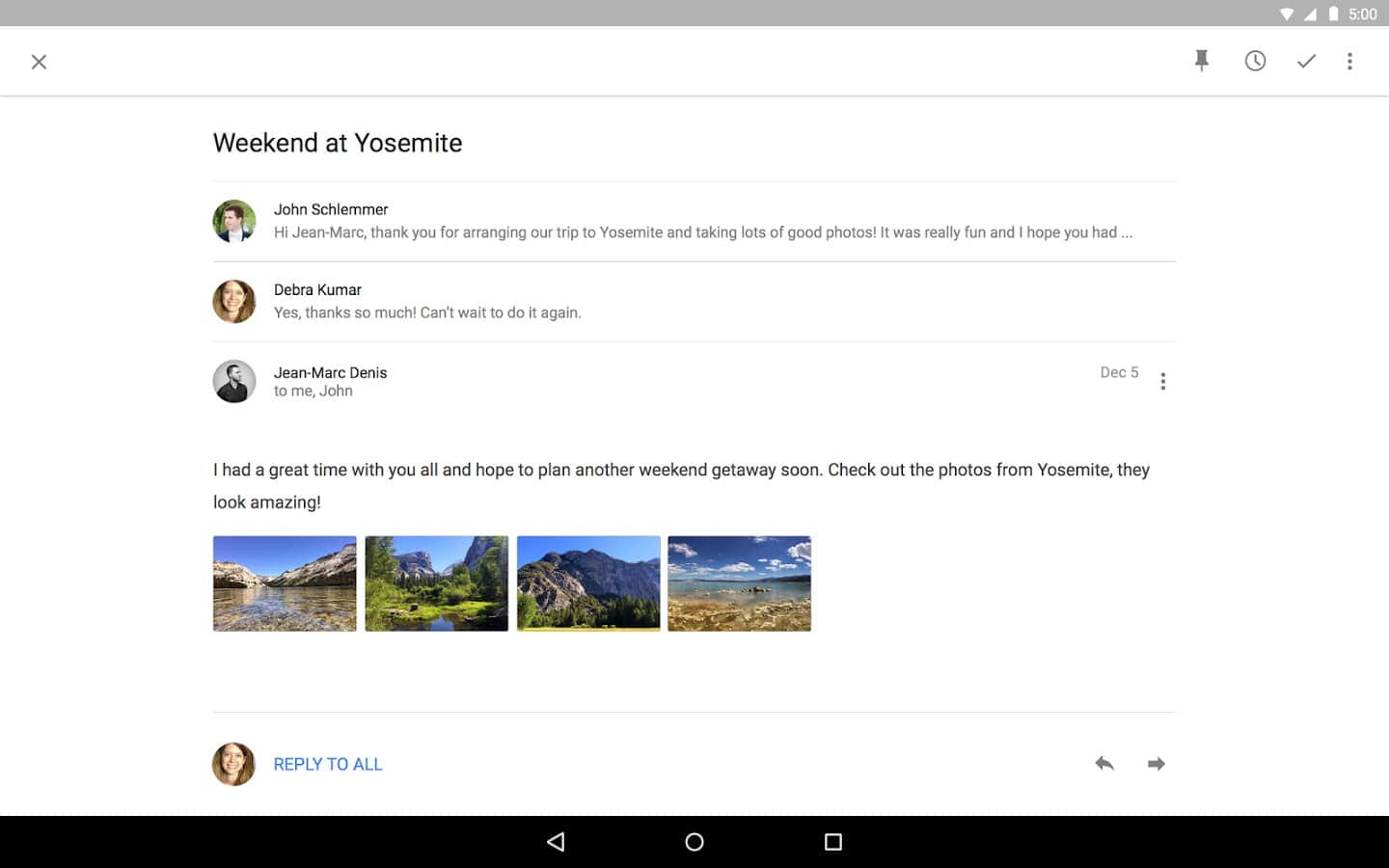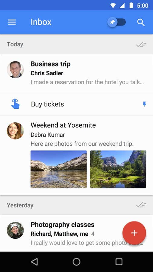 Як і у більшості додатків Google, оформлення Inbox відповідає концепції Material Design.