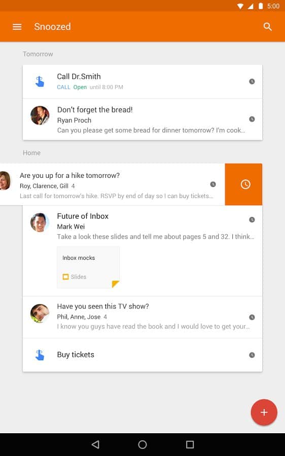 Дуже зручно, що всю важливу інформацію і вкладення в інбоксе можна переглядати, не відкриваючи лист, а ще зручніше, що прямо з поштовика можна створювати нотатки, про яких Inbox вас потім і сповістить.