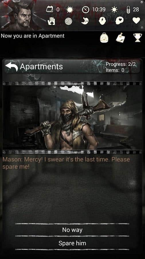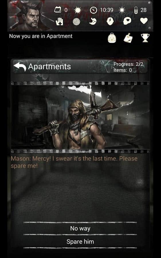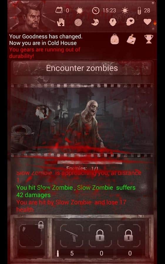Infected Zone: Zombie Survival – захоплюючий квест на андроїд, який перенесе вас в постапокаліптичний світ. У цій грі ви опинитеся в місті, де лютує небезпечний вірус, що перетворює людей в зомбі. Вашим завданням у цій грі буде побудувати собі притулок, добувати корисні ресурси і намагатися вижити в цьому небезпечному світі. У цій грі представлено чотири унікальних персонажів, кожен з яких має унікальну історію, і життя їх буде залежати від вашого вибору. Вирішуйте складні головоломки і задачки і проходите захоплюючі квести. Насолоджуйтеся захоплюючим сюжетом гри і виживайте в небезпечному світі. У грі представлено більше 20 варіантів кінцівок, які залежатимуть від вашого вибору.