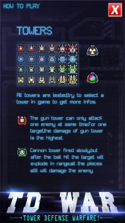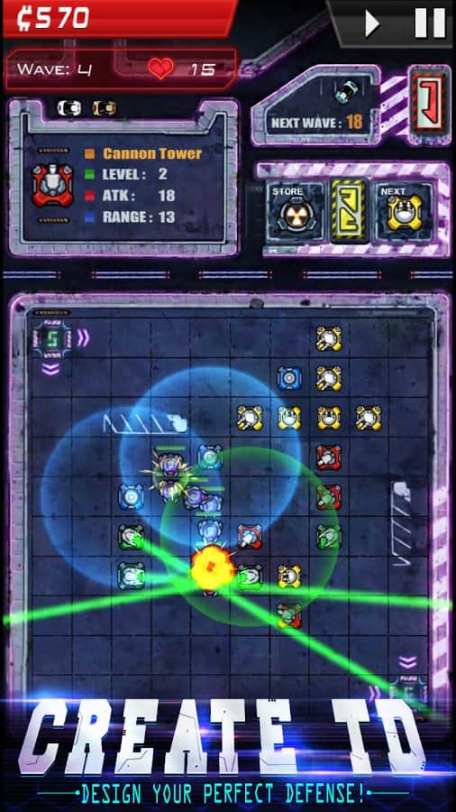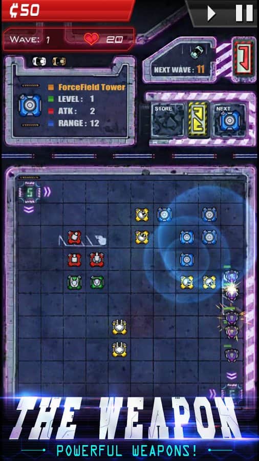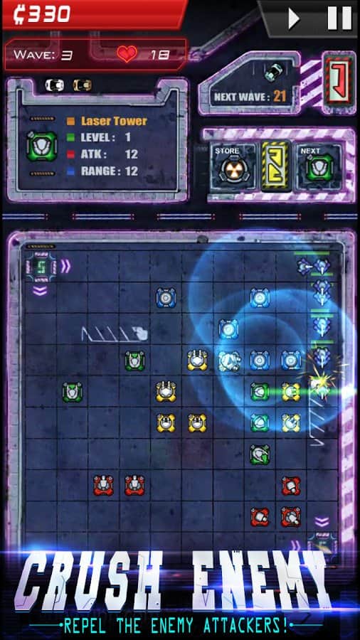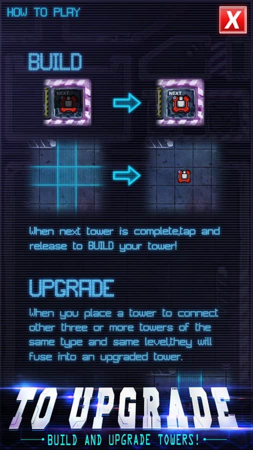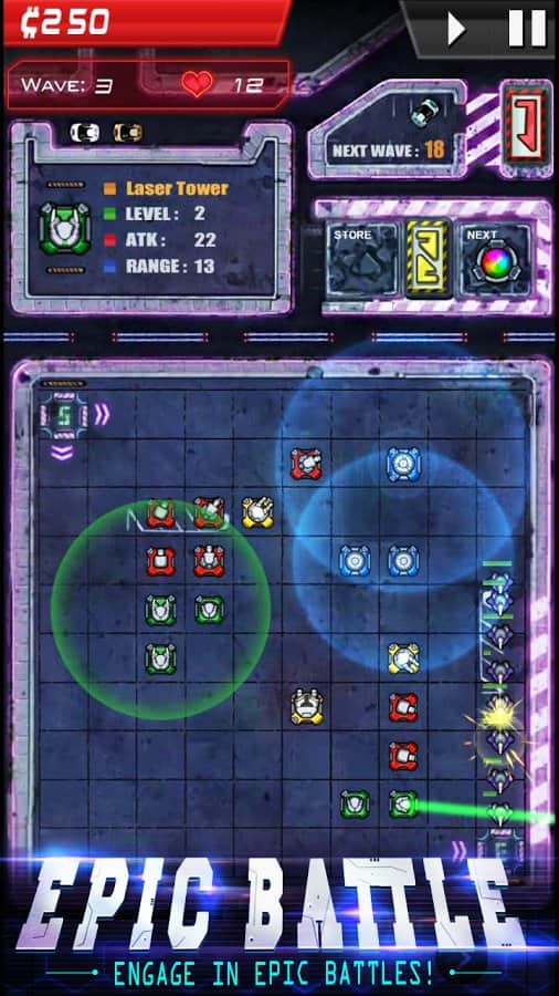 Infinity Defense – стратегія на android, яка перенесе вас в майбутнє, де ви будете битися з дрона. У цій грі вашою головною задачею буде розставити на полі бою автоматичні турелі і захисні вежі так щоб не дати ворогові знищити вашу оборону і не проникнути на базу. Розробляйте свою непереможну тактику ведення бою і застосовуйте для захисту різні типи веж. Покращуйте свої вежі, об'єднуючи їх для того, щоб здолати більш сильного ворога. Проходьте всі місії гри і відкрийте для себе всі башти, а також застосовуйте в битві різні поліпшення.