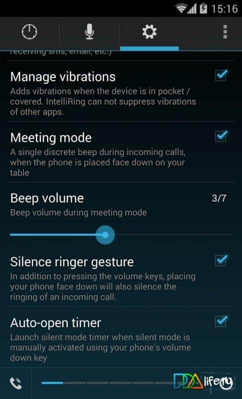 IntelliRing - Хочете замінити ваш стандартний виклик більш унікальним? Цей додаток це не просто заміна стандартних функцій, а справжнє нововведення в цій сфері. Це додаток так само називають "Інтелектуальним дзвінком" все тому що воно змінить дзвінок вельми незвичайним чином. Якщо ваш смартфон лежить на столі, воно буде підсилювати звук, якщо ж він у кишені, то звук буде залишатися середнім. За допомогою датчиків у вашому смартфоні він буде визначати де знаходиться ваш пристрій, і залежно від цього змінювати виклик.