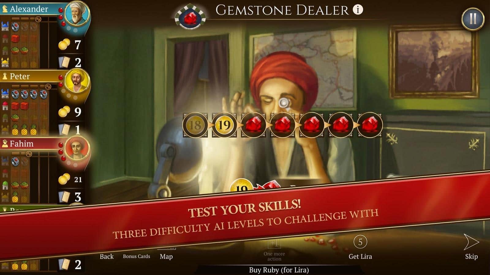 Istanbul: Digital Edition – стратегія на андроїд, де ви будете керувати чотирма помічниками і перевозити товари. У цій грі ви будете виступати в ролі торговця який контролює дії чотирьох помічників для того щоб заробити якомога більше рубінів. Переміщайте своїх помічників по різних куточках Стамбула і базару і транспортуйте товари, заробляючи для свого торговця монети. По дорозі збирайте руїни і зробіть свого торговця найбагатшою людиною в Стамбулі. Переміщайте вози з 16 різних місцях на карті і робіть все, як можна швидше, щоб обдурити своїх суперників. Оновлюйте і збільшуйте свої тачки, щоб перевести більше товарів.