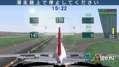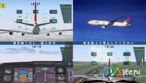 Jet De Go Pocket - симулятор гражданских самолетов для PSP. В вашем распоряжении окажутся такие гиганты, как Боинг 777-200, Боинг 767-300 и Боинг 757-400. Игра представляет возможность играть от третьего лица или же прямо из кабины самолета. В процессе игры вы сможете выбрать разные японские аэропорты, разные режимы игры и даже погодные условия!