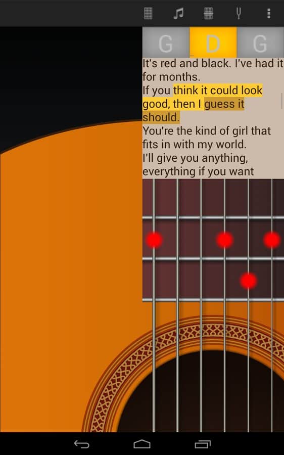 Jimi Guitar-дивовижне додаток, яке імітує гітару на вашому пристрої. Не завжди справжня гітара під рукою, а іноді вона дуже потрібна, наприклад, коли душа співає...Це звичайно не замінник, але свого роду помічник - звук досить реальний, існує кілька видів - для правої і лівої руки - вибирайте акорди для лівої і грайте тільки правою, якщо хочете. Також можна поспівати пісні французькою...ну це для бажаючих...