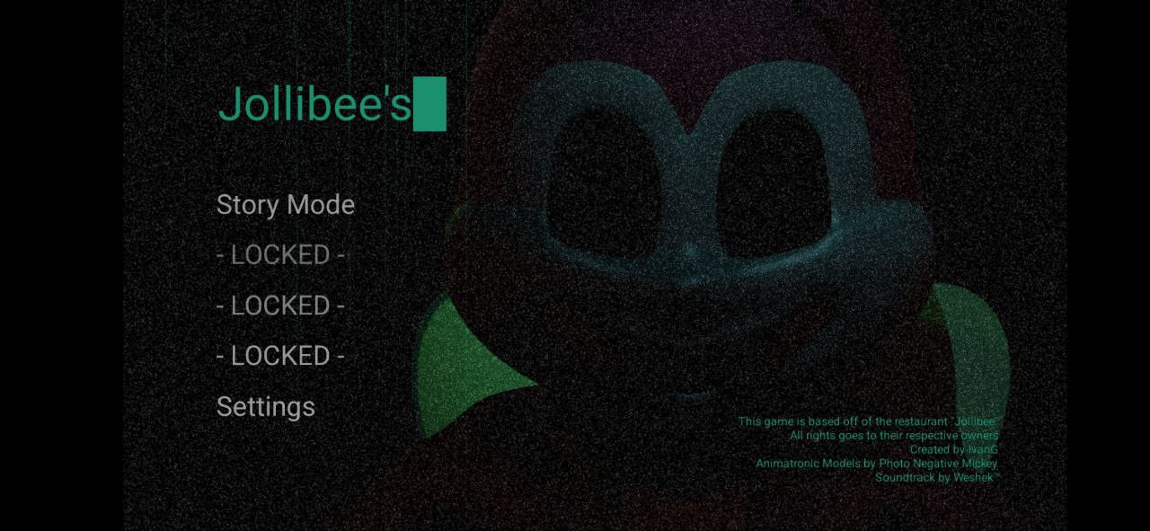 Jollibee's — місце, де веселощі зустрічаються з таємницями! Пориньте в атмосферу свята, ігор та смачної їжі разом з Попо та його аніматронними друзями. Розважайтеся в ігровій кімнаті, святкуйте дні народження та насолоджуйтеся виставами... але будьте обережні: не все так райдужно, як здається на перший погляд. Пам’ятайте: входячи в Jollibee's, ви берете на себе всі ризики — як фізичні, так і психологічні!